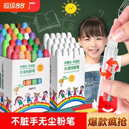 水溶性粉笔无尘儿童黑板家用教学教师专用彩色粉笔白色水性白粉笔黑板报鲜艳宝宝粉笔套可擦无毒不脏手显色