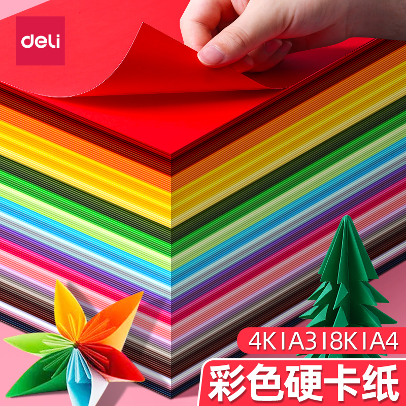 得力彩色硬卡纸手工卡纸A4儿童手工剪纸彩纸折纸8k幼儿园制作材料小学生A3折叠纸幼儿园diy制作美术绘画4K