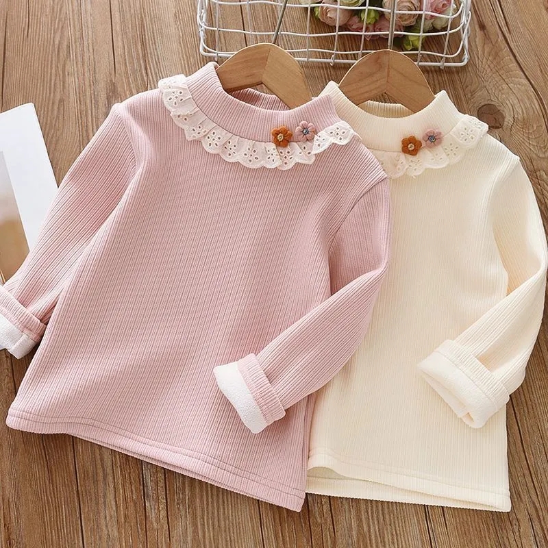 女童打底衫2024新款冬季儿童半高领洋气可爱加绒加厚上衣女孩上衣