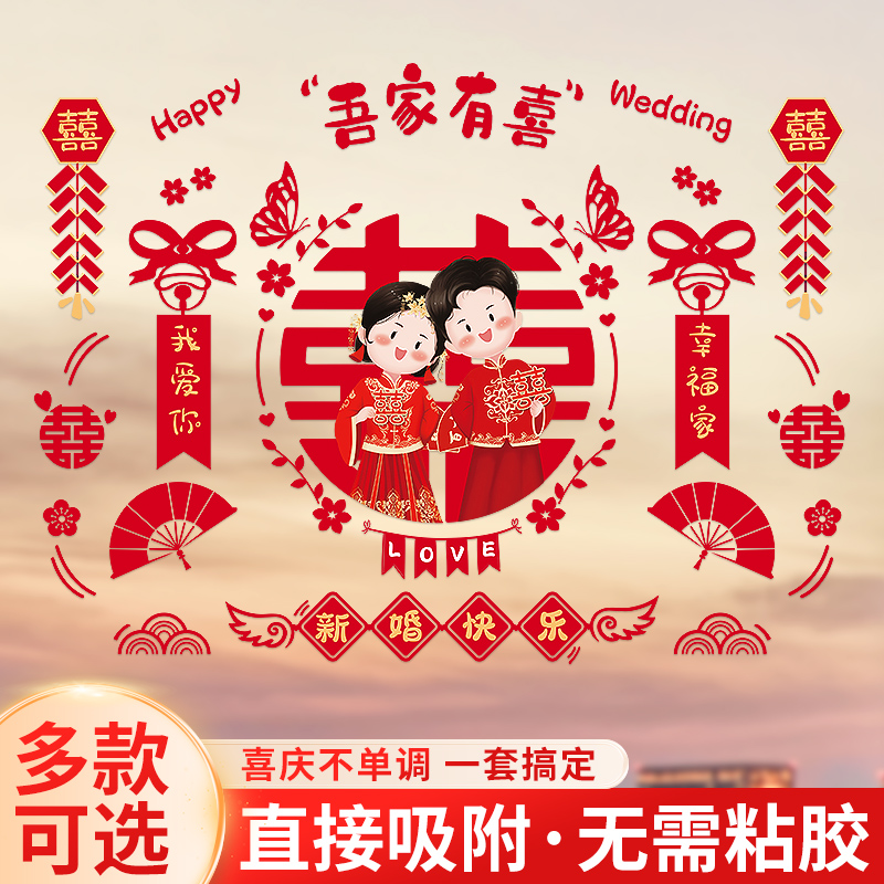 喜字贴结婚专用女方装饰窗花贴静电贴新房贴纸窗花布置玻璃贴门贴