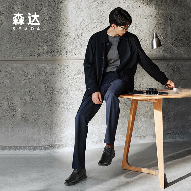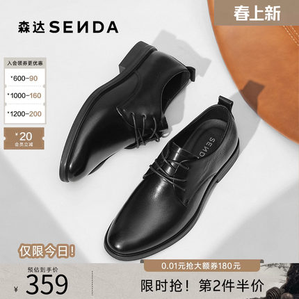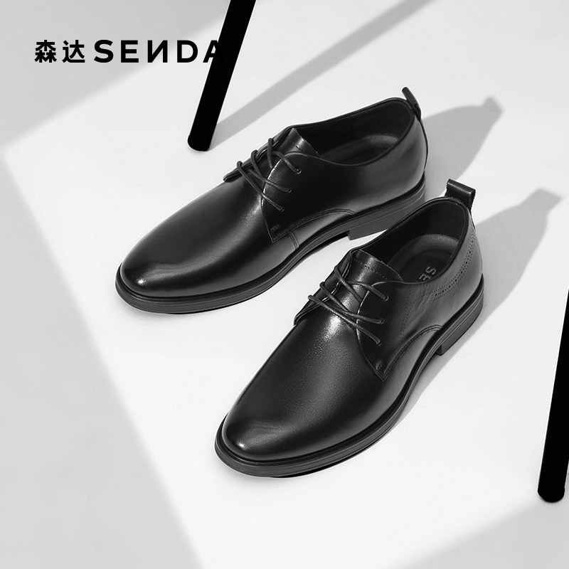 森达正装皮鞋秋新商场同款圆头牛皮鞋职场通勤商务德比鞋1YN01CM5