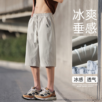 男士短裤夏季卡其运动休闲冰丝裤子凉感透气七分裤美式时尚六分裤