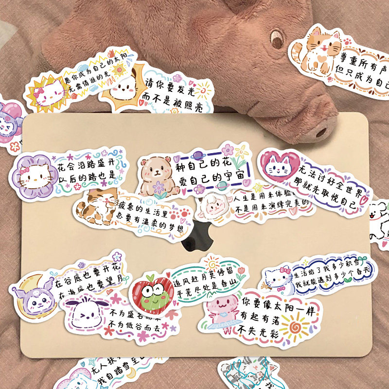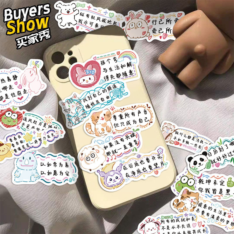 124张可爱励志文字贴纸学习自律ins治愈系文案手账手机壳防水贴画
