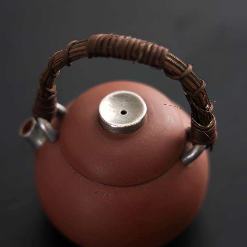 藤编手提圆壶鎏银小茶壶提梁壶家用高档原陶紫砂泡茶壶单壶小品壶