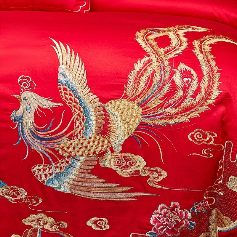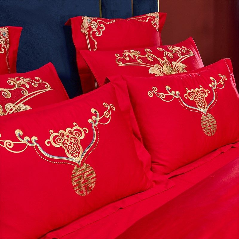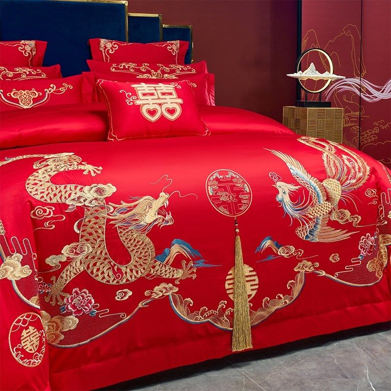 全棉婚庆四件套全棉红色龙凤喜被婚嫁床上用品全棉床单被套