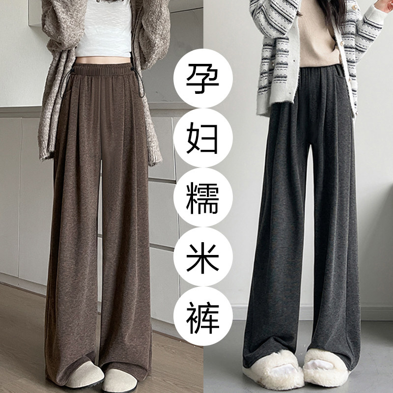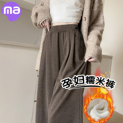 孕妇裤子秋冬季加绒加厚糯米裤2026新款不勒肚子羊羔绒阔腿裤冬装
