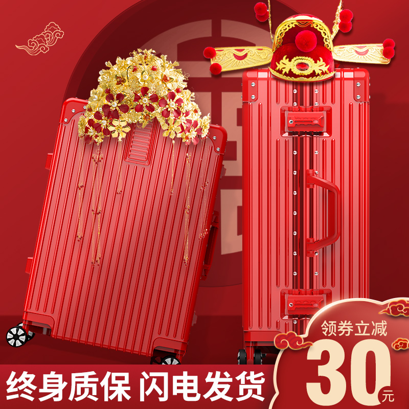 陪嫁箱结婚行李箱女新娘红色拉杆箱20寸婚礼嫁妆箱旅行密码皮箱子