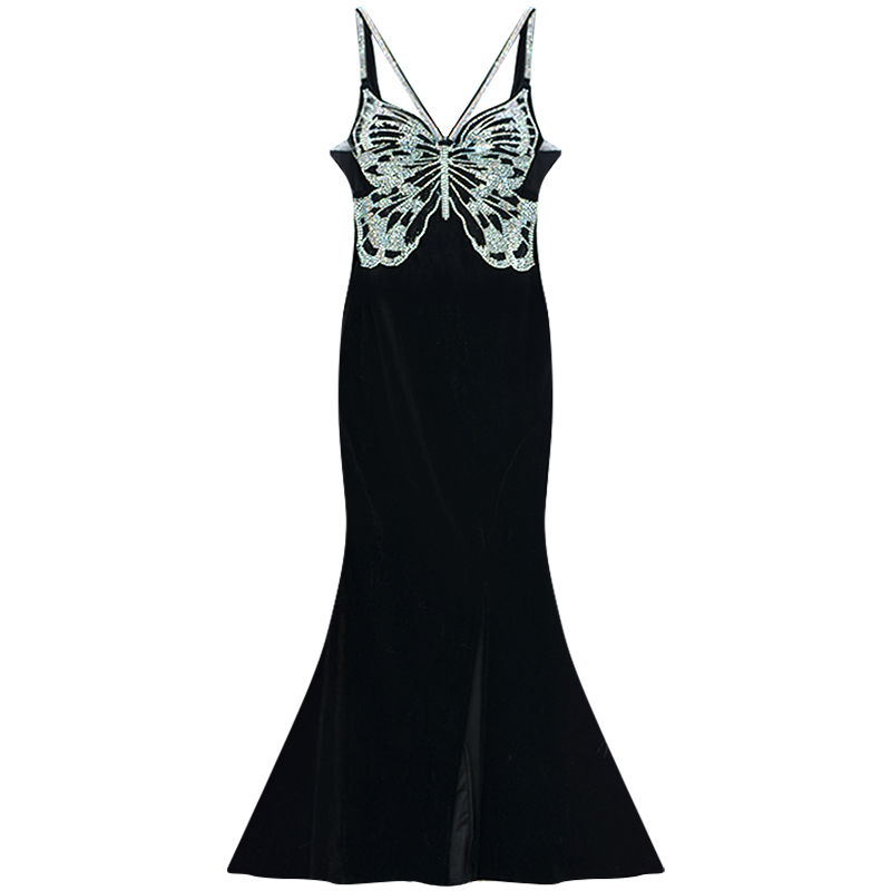 小众高级感吊带连衣裙女法式气质丝绒长裙晚礼服生日开叉鱼尾裙子