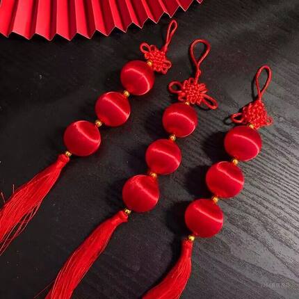 新年装饰品丝光红球串小灯笼挂饰 商场春节结婚喜庆橱窗盆景挂件