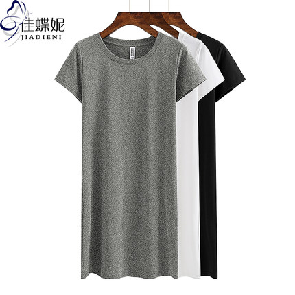 夏季新款韩版圆领纯棉修身显瘦绿色简约中长款短袖连衣裙女装
