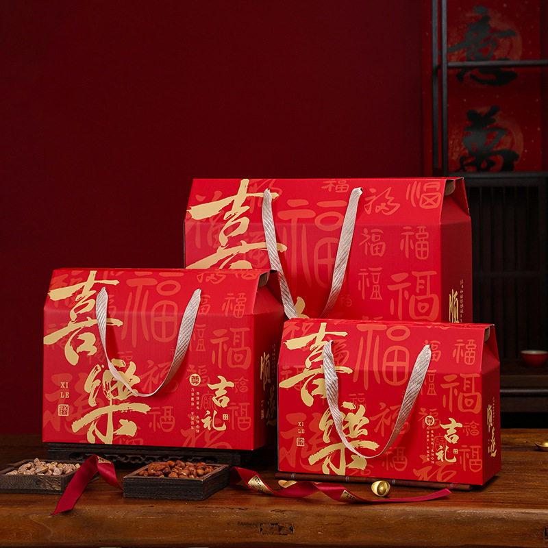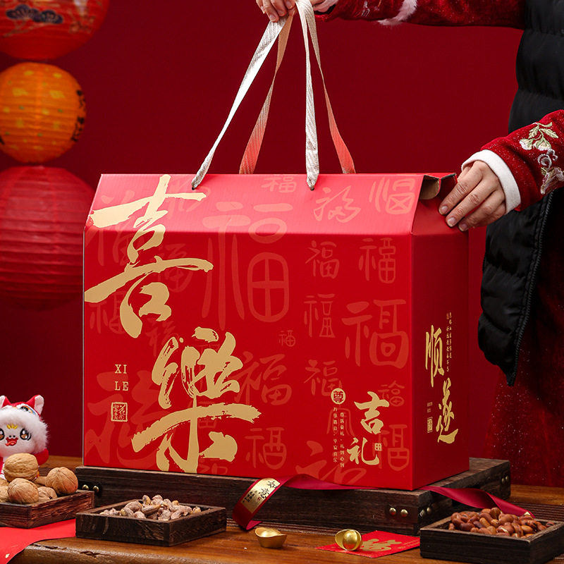 中国红新年精品礼物年货熟食土特产正月国潮红包装盒腊味礼盒空盒