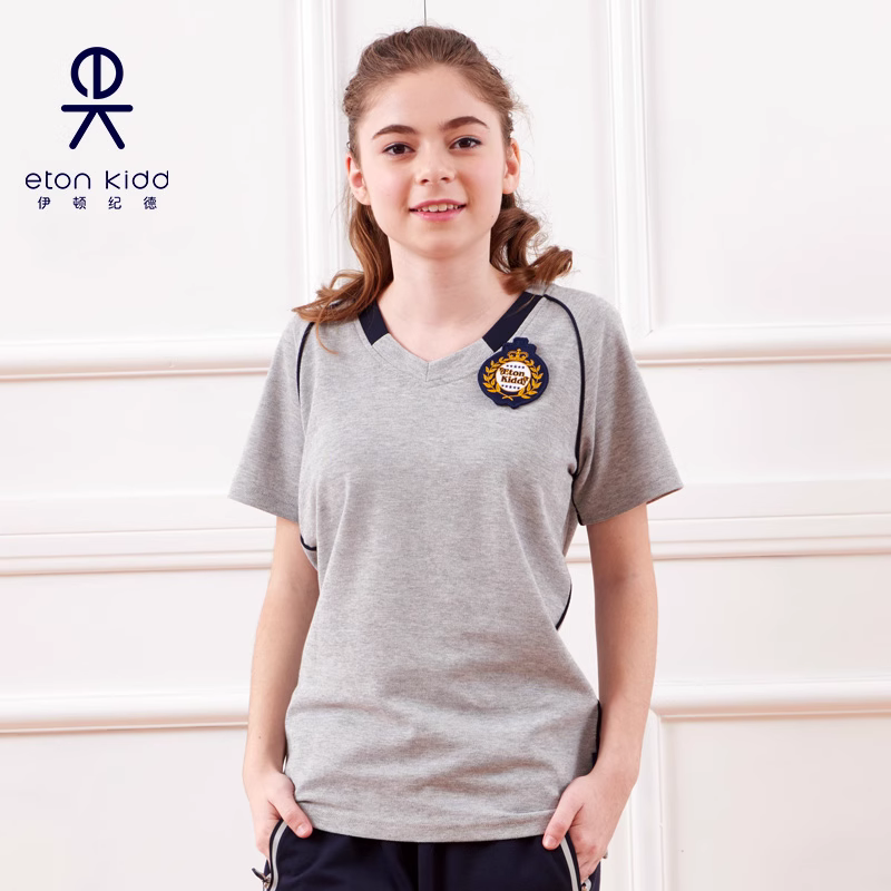 伊顿纪德校服男童t恤短袖V领中大童夏季儿童上衣女童体恤衫18T001
