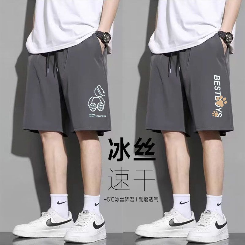 运动裤短裤冰丝速干男士夏季薄款阔腿运动裤五分裤宽松百搭学生休