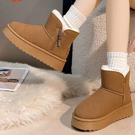 2025冬季雪地靴女保暖短筒靴加绒加厚舒适棉鞋东北户外厚底棉靴