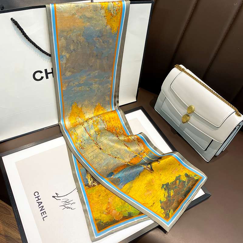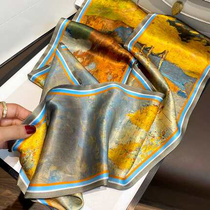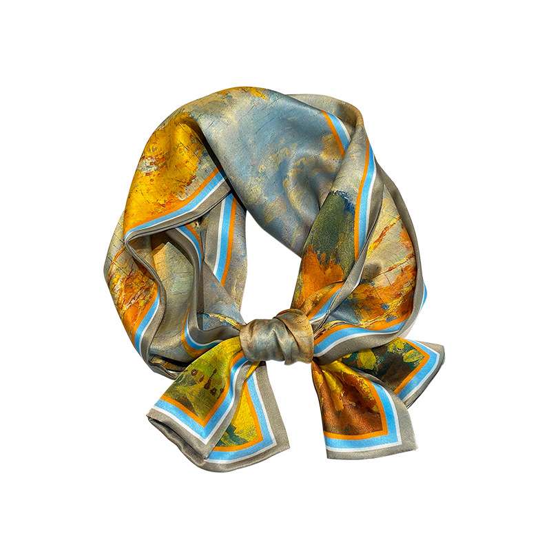 丝巾女桑蚕丝真丝领巾春秋薄款民族风印花领巾小围巾法式油画发带