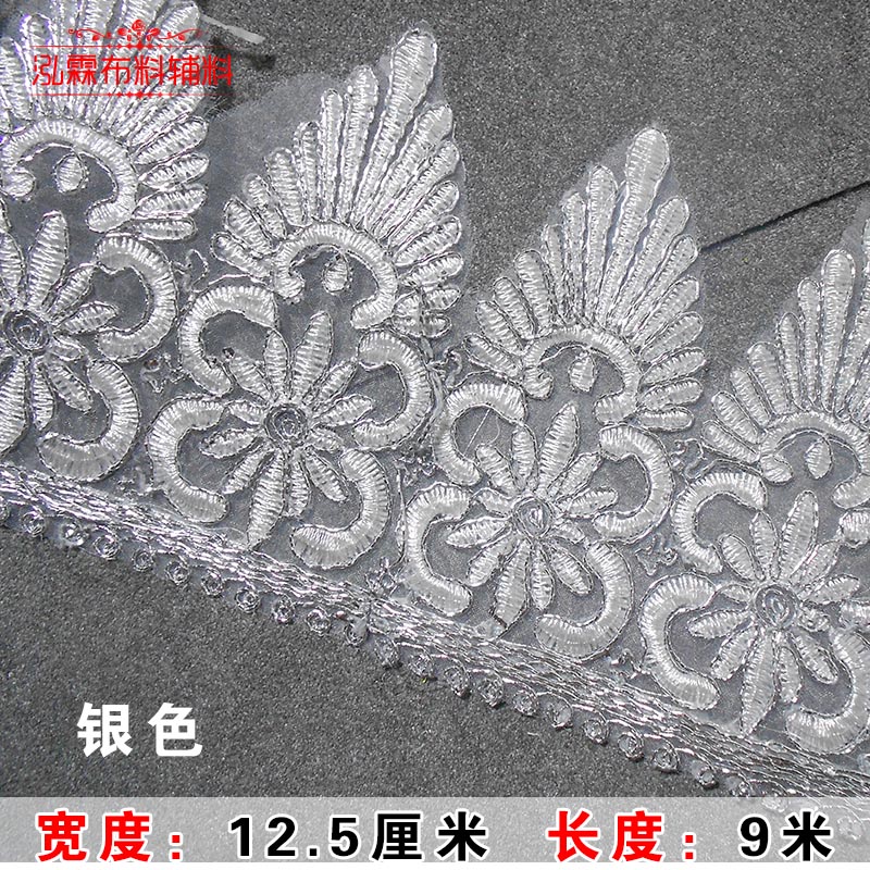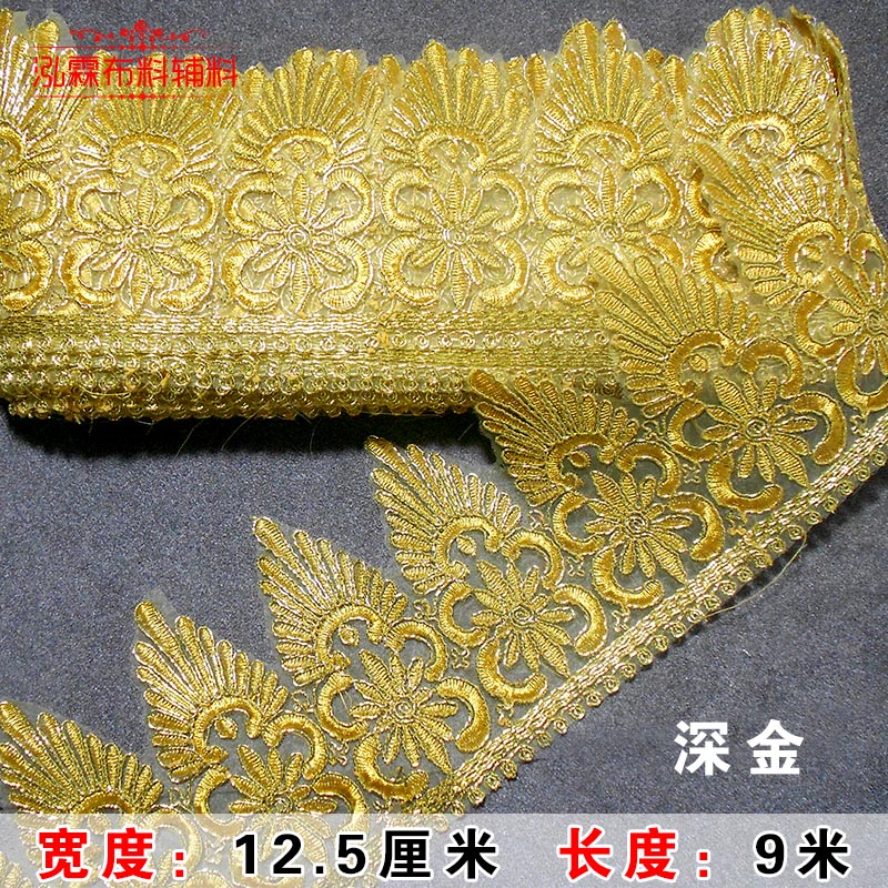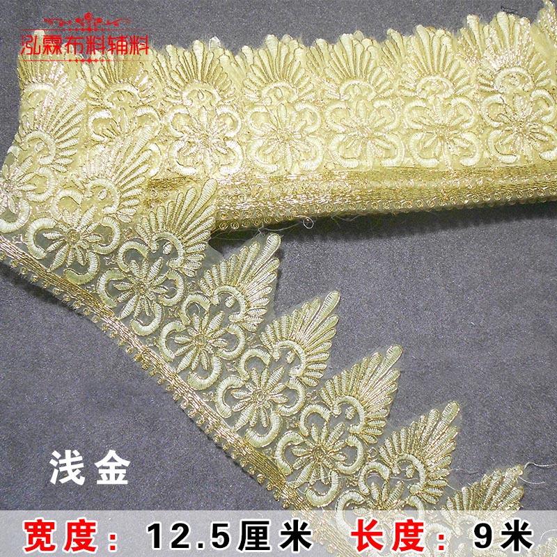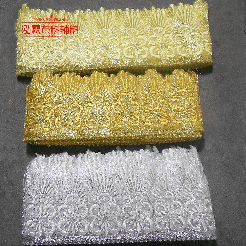 网纱金银刺绣花边婚纱辅料宽花边蕾丝大波浪三角花边