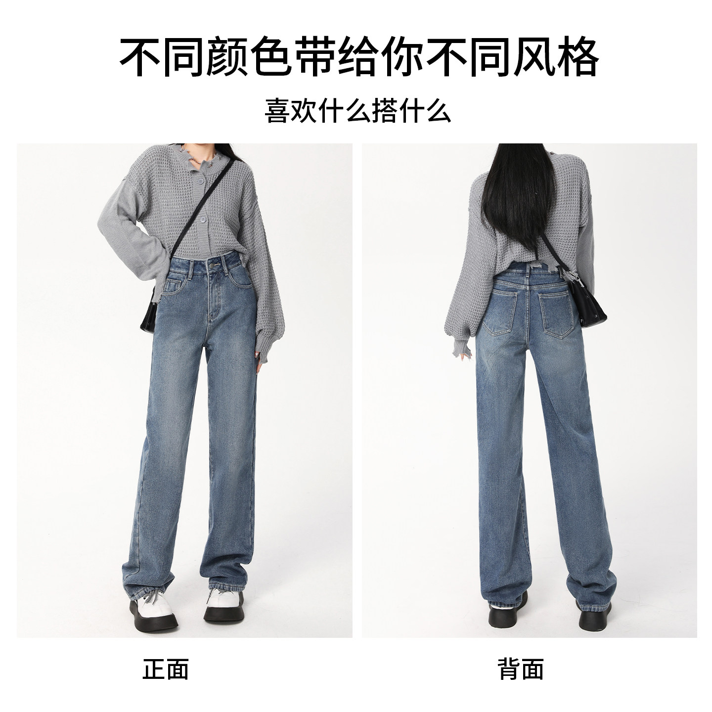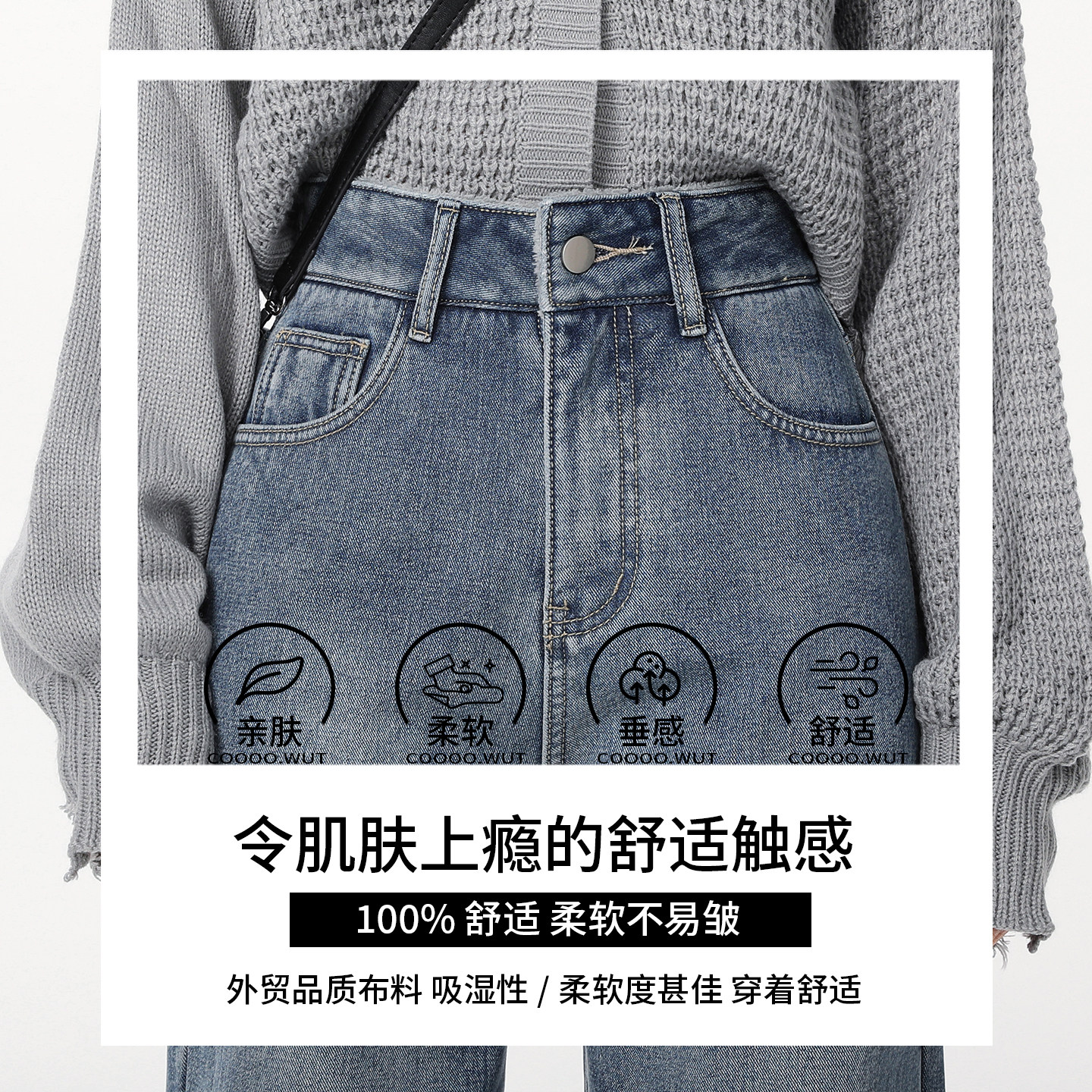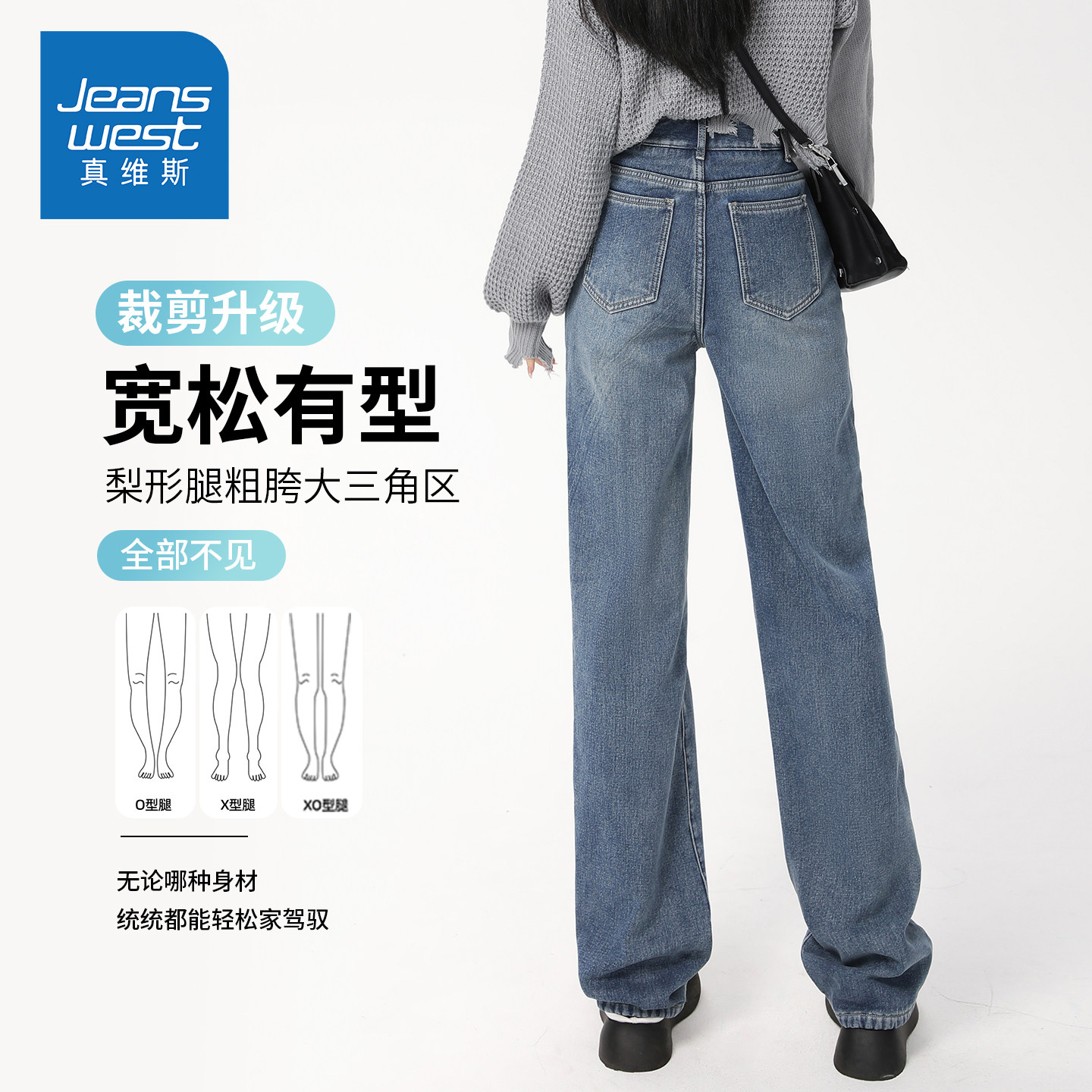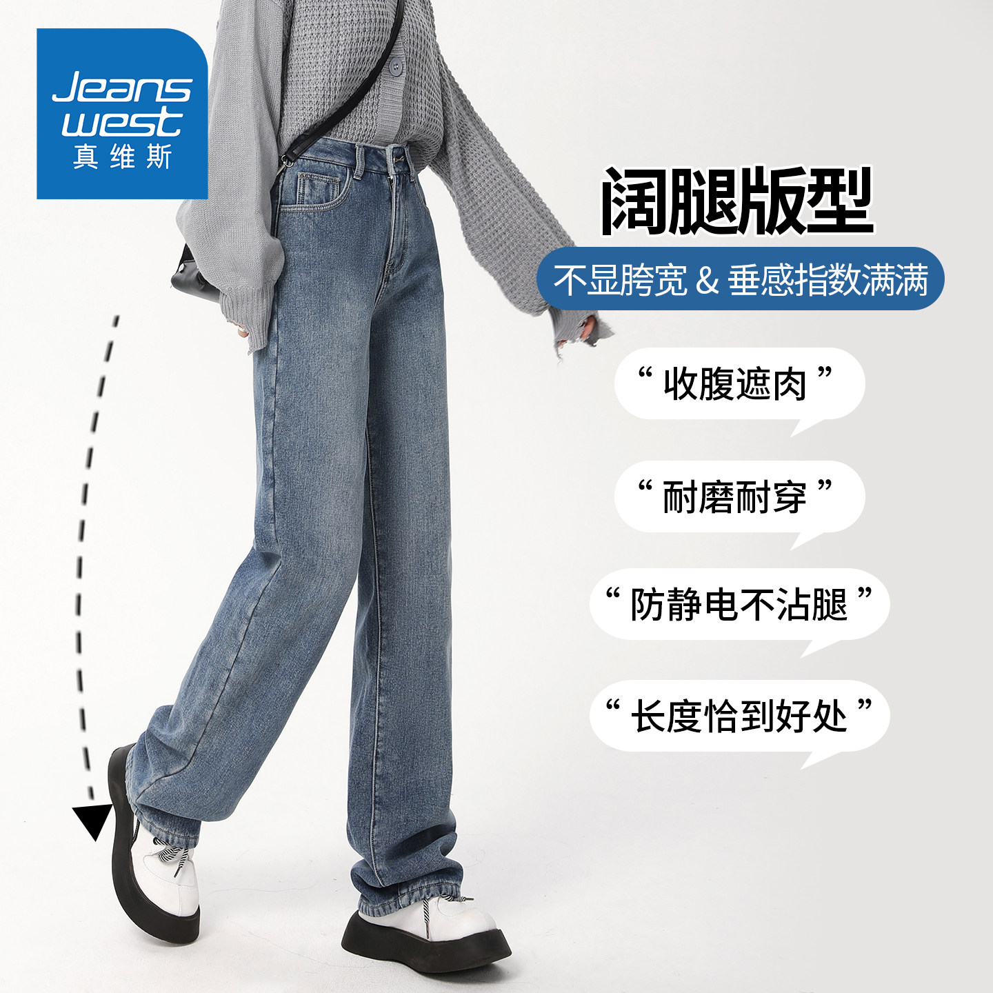 KZH真维斯加绒加厚牛仔裤女秋冬新款宽松直筒裤高腰显瘦阔腿长裤