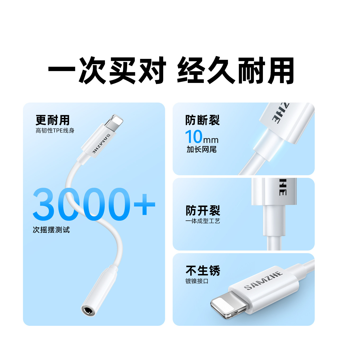 山泽苹果耳机转换头typec转接头lightning转35mm圆孔接口有线耳机音频线转换器适用17苹果14平板iPad华为小米