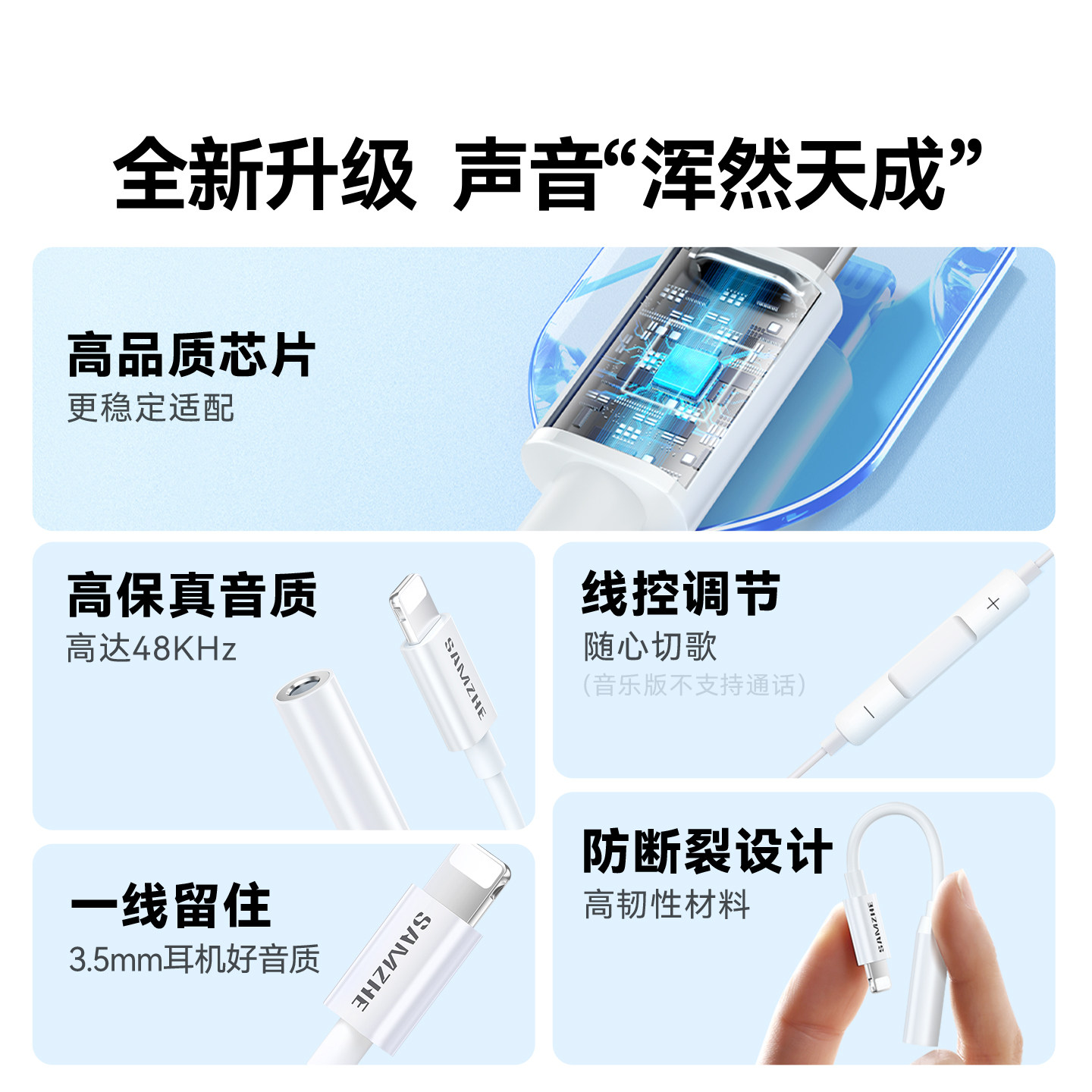 山泽适用于苹果有线耳机转接头