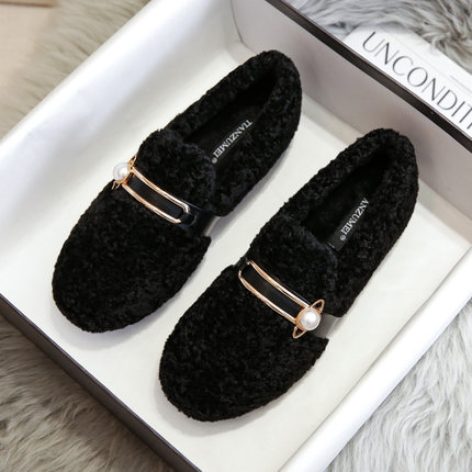 毛毛鞋女秋冬季2025新款加绒棉鞋外穿厚底豆豆鞋羊羔绒大码41到43