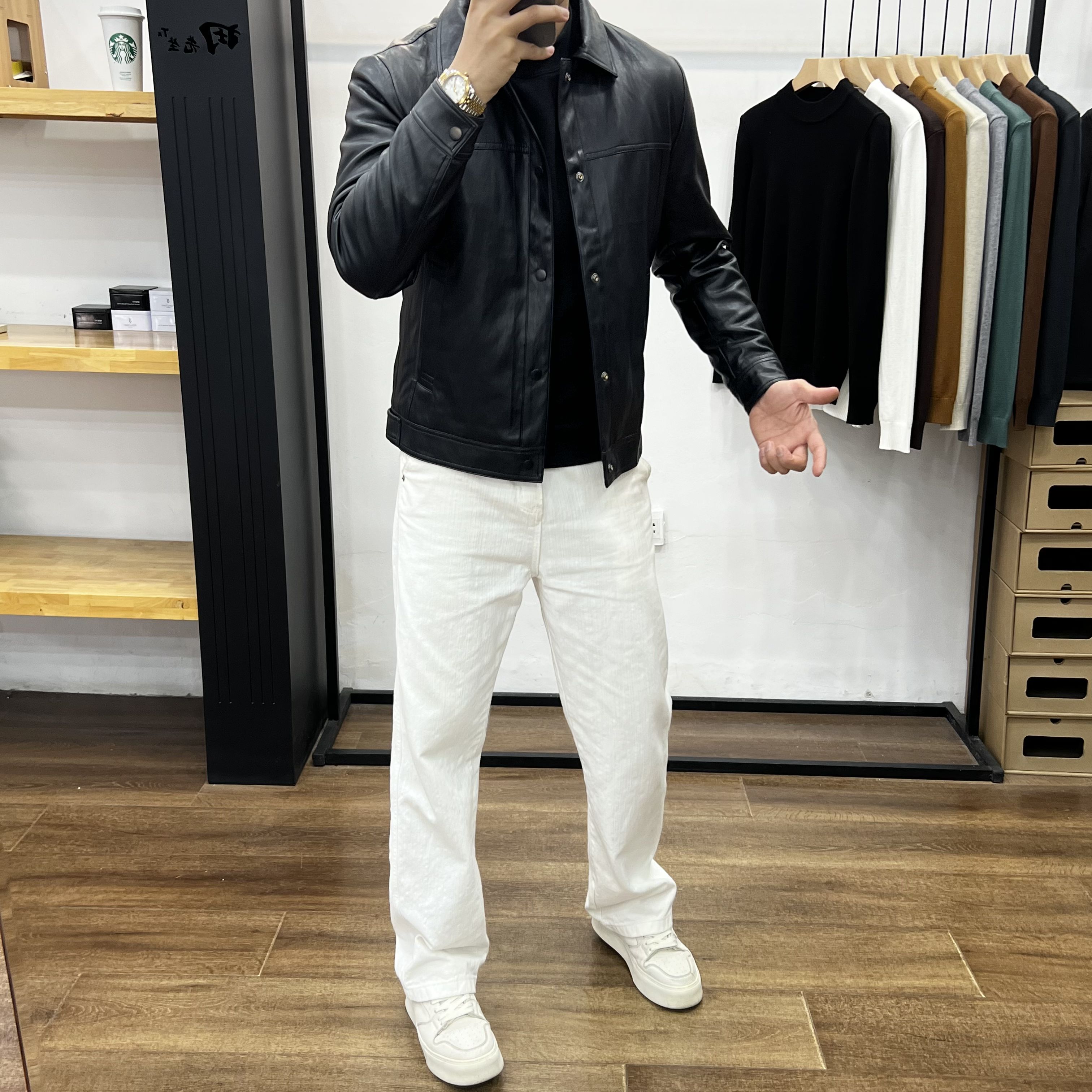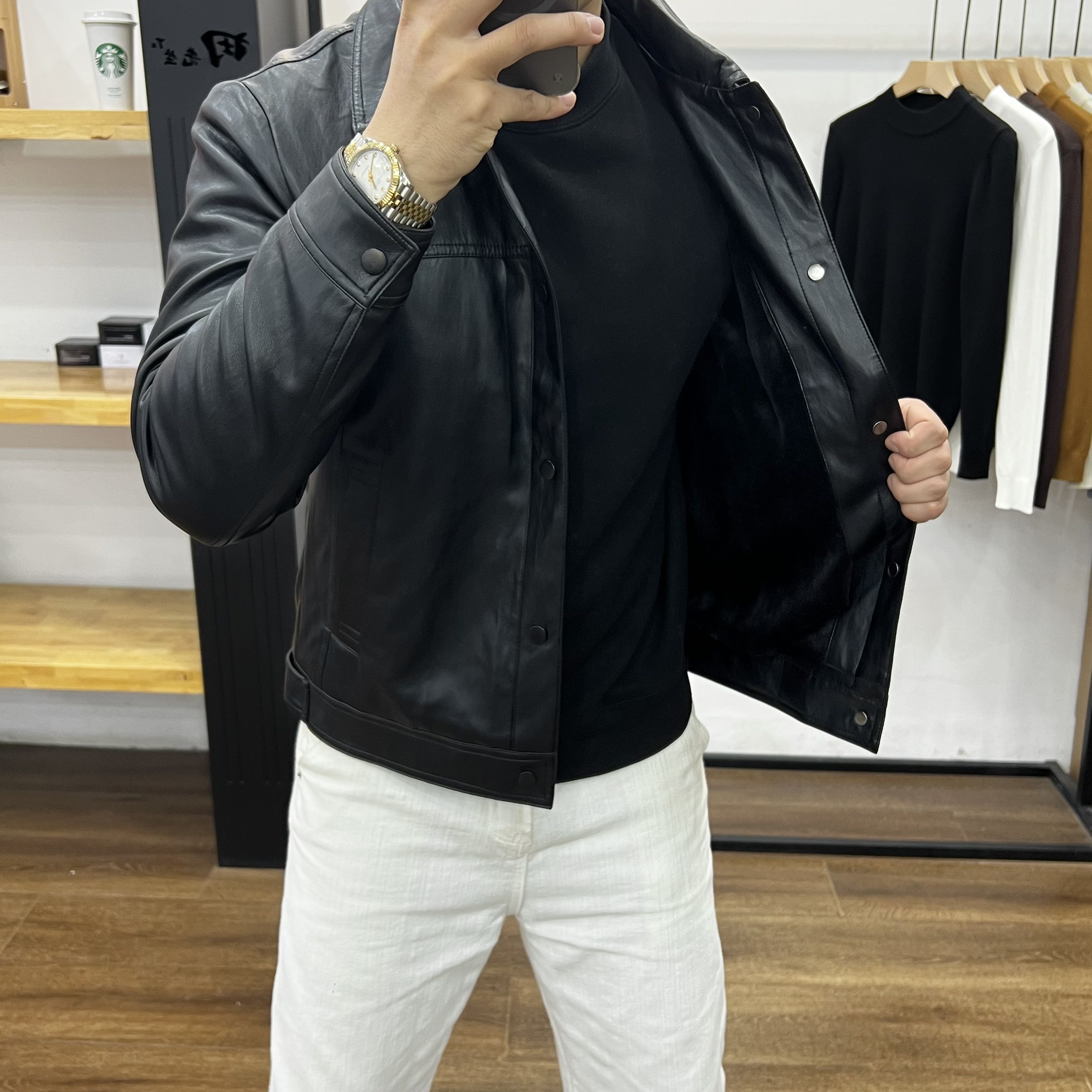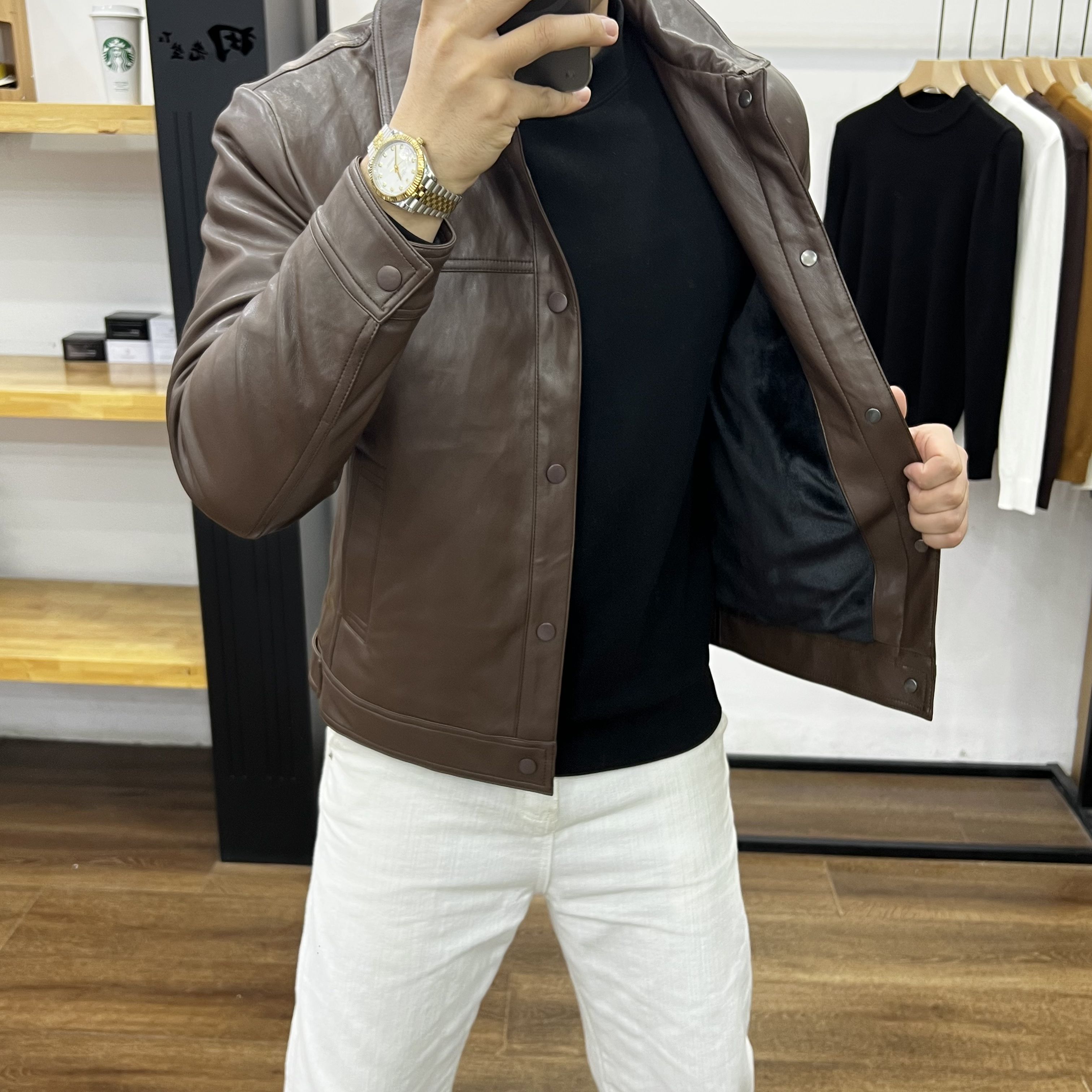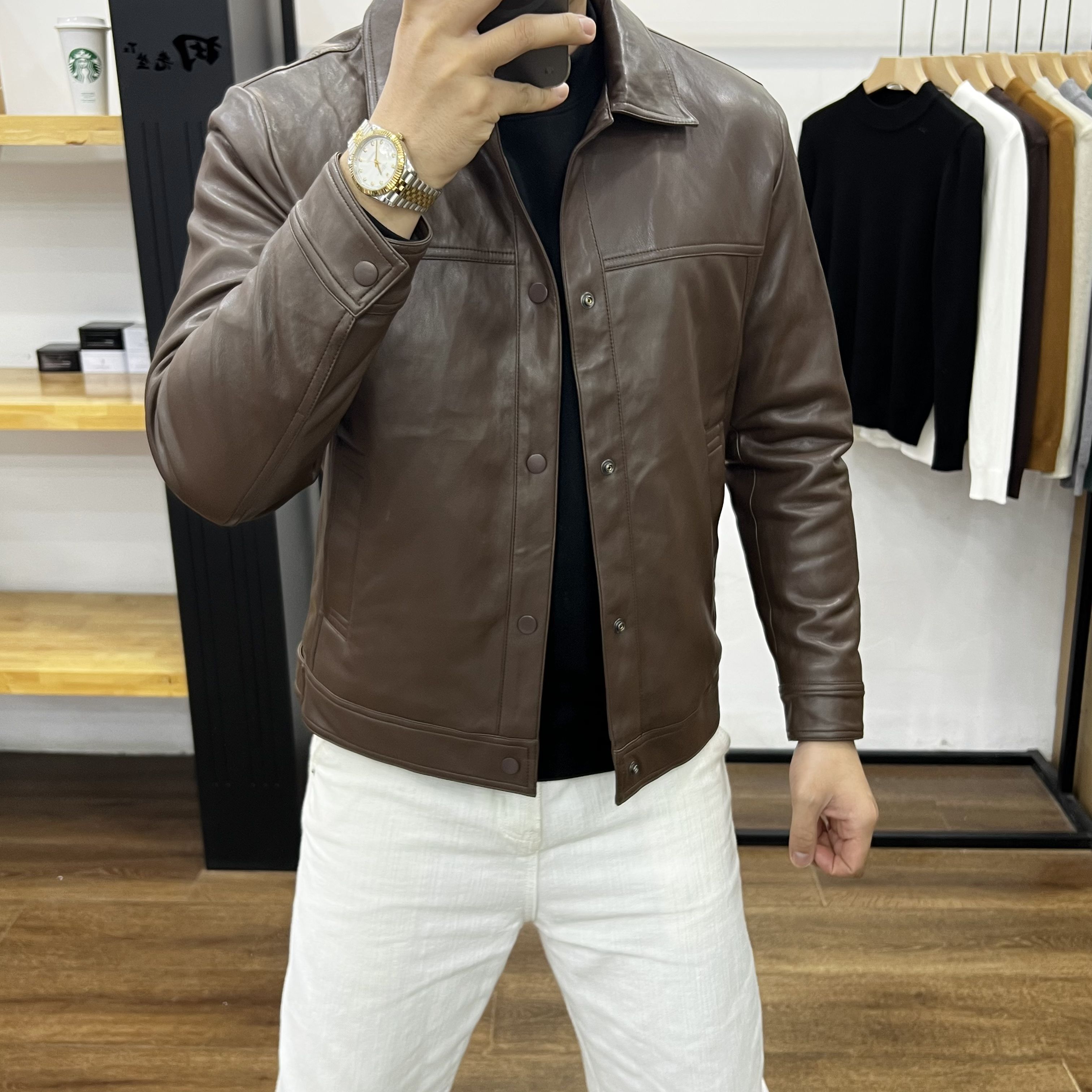 田先生翻领修身加绒加厚男士皮衣