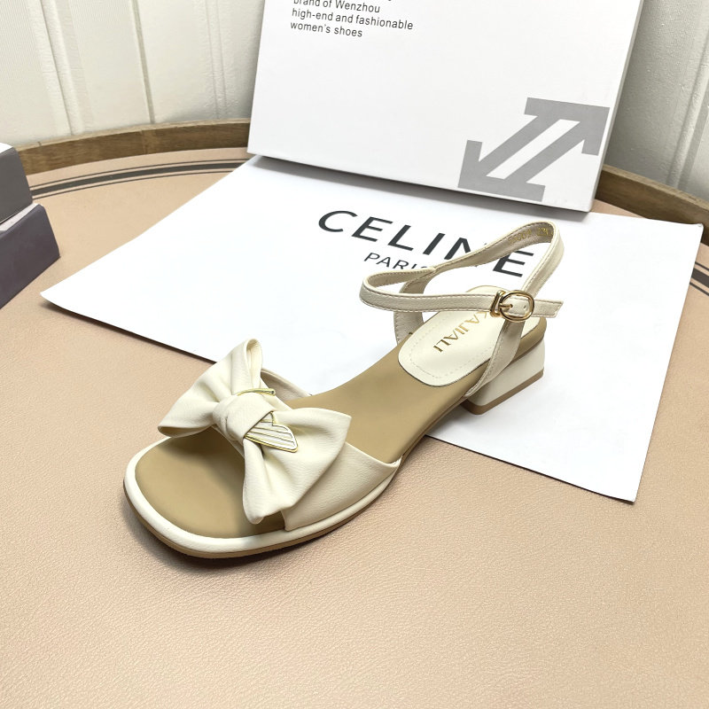 卡嘉莉凉鞋女夏外穿时尚高级感2025新款粗跟中跟蝴蝶结配裙子女鞋