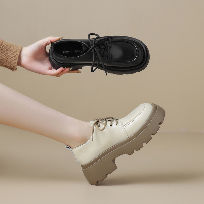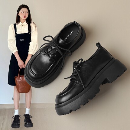 ZHR则则厚底乐福鞋女2024春季新款小皮鞋英伦粗跟软底一脚蹬单鞋