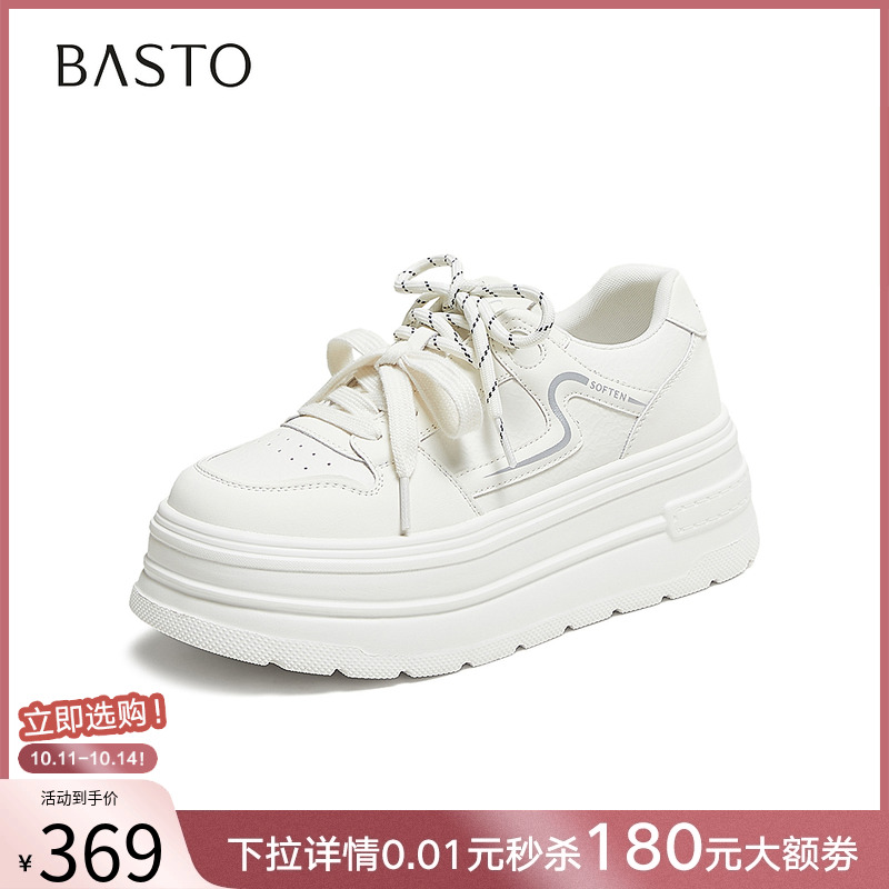 百思图2025秋季商场新款松糕厚底小白鞋板鞋女休闲运动鞋D3283CM5