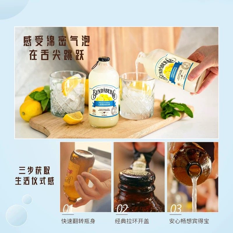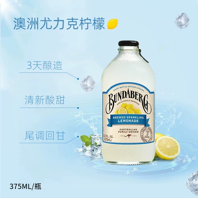 澳洲宾得宝柠檬果汁气泡水Bundaberg Lemonade饮料 375ml*6瓶装
