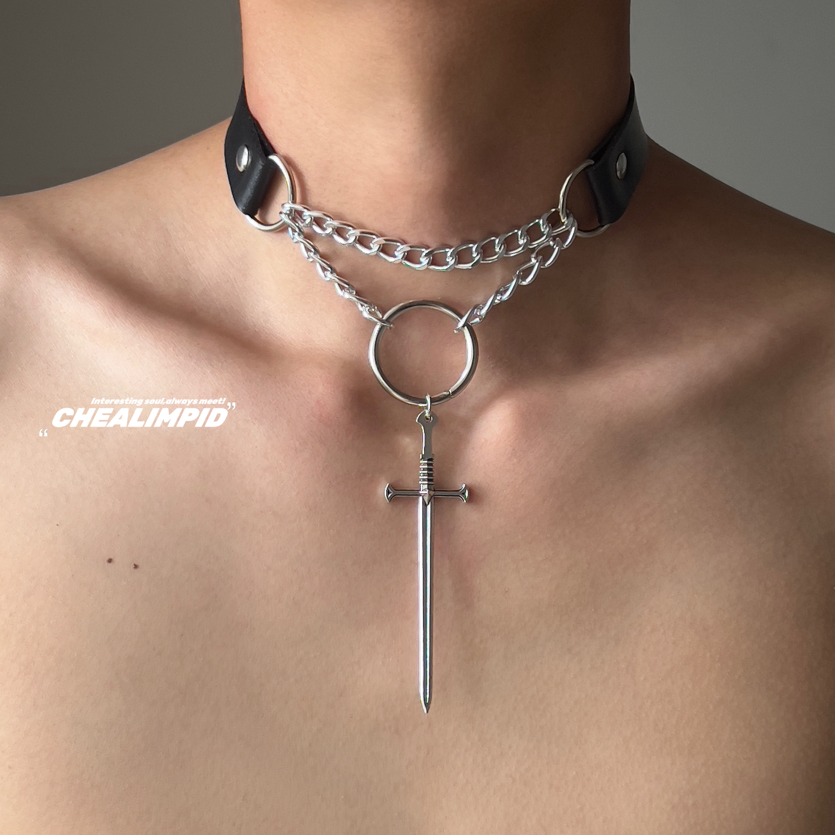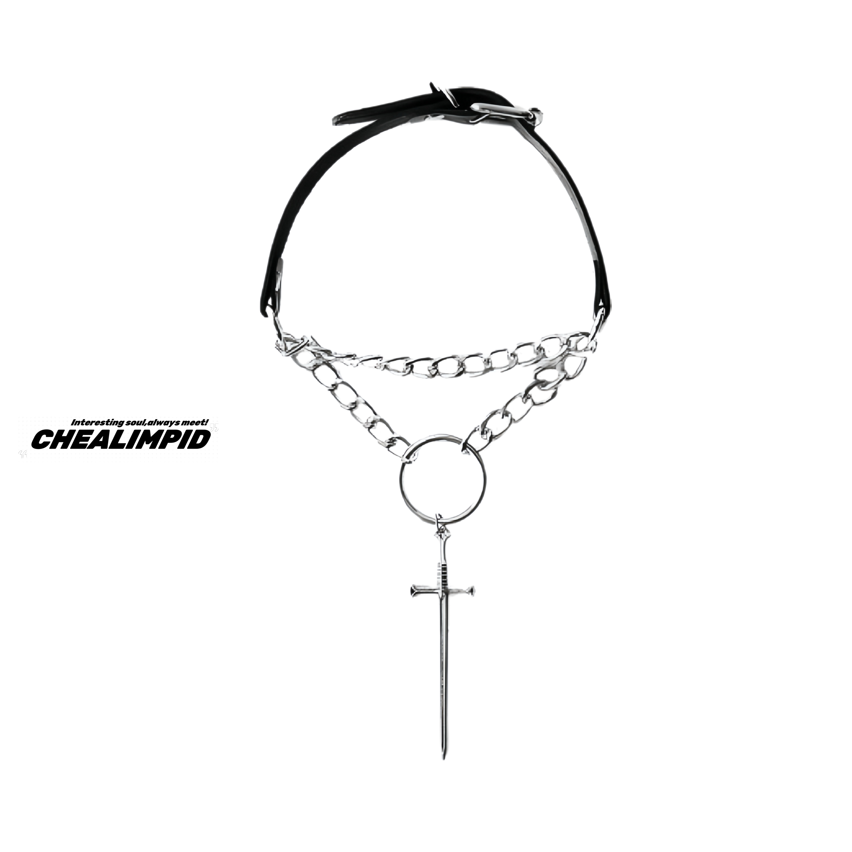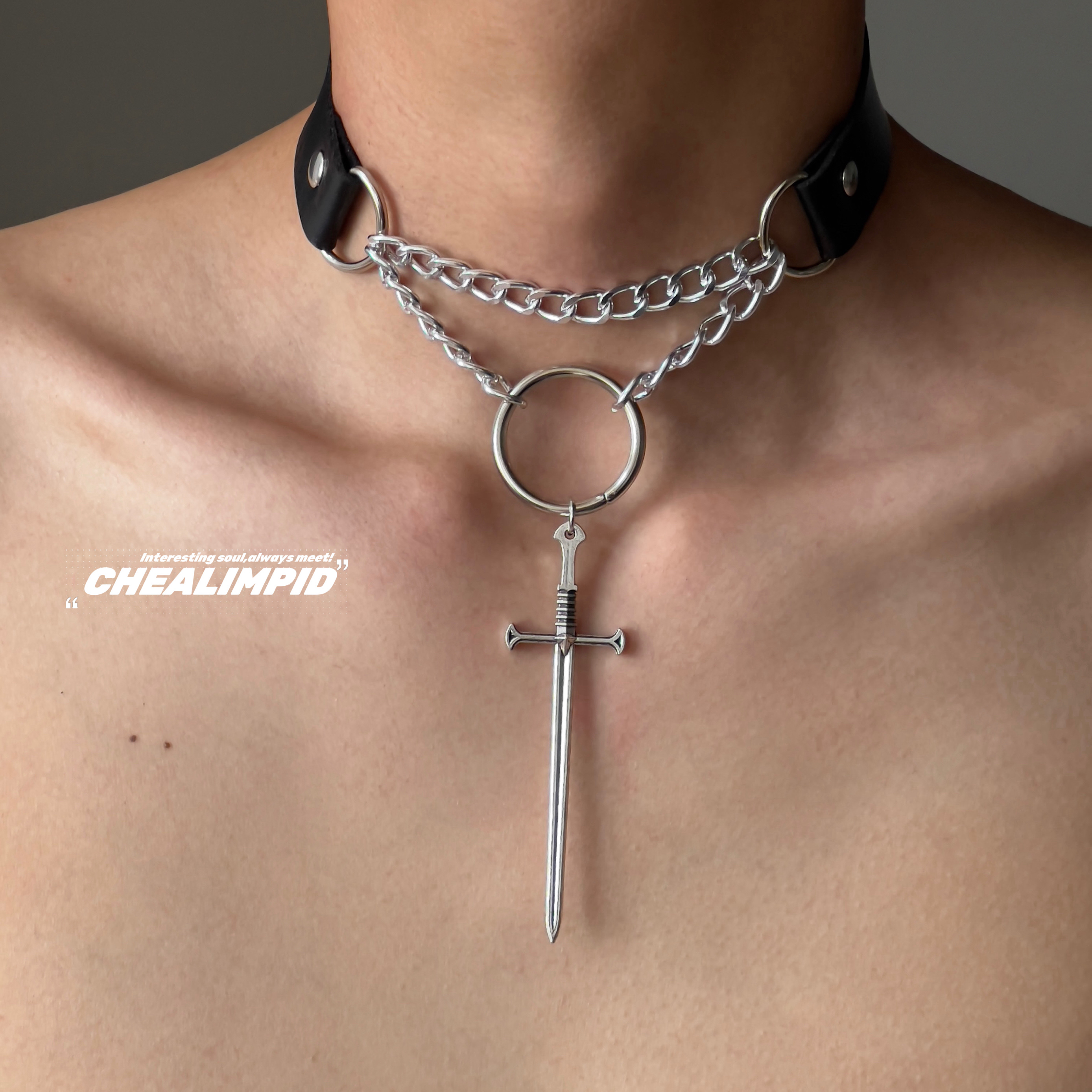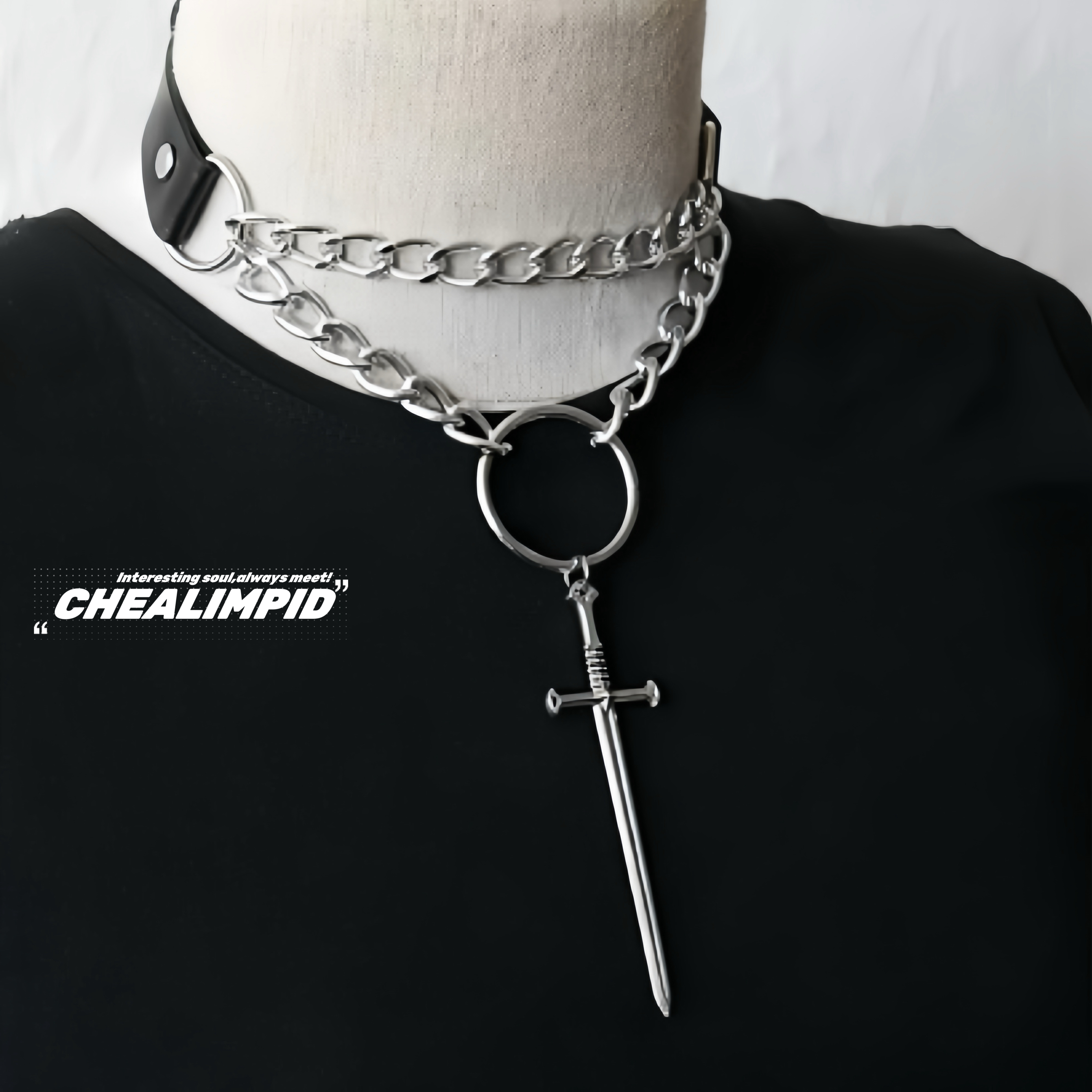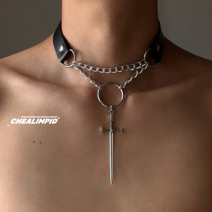 choker/.救赎圣剑双层锁骨链暗黑朋克复古十字架嘻哈潮男女项链