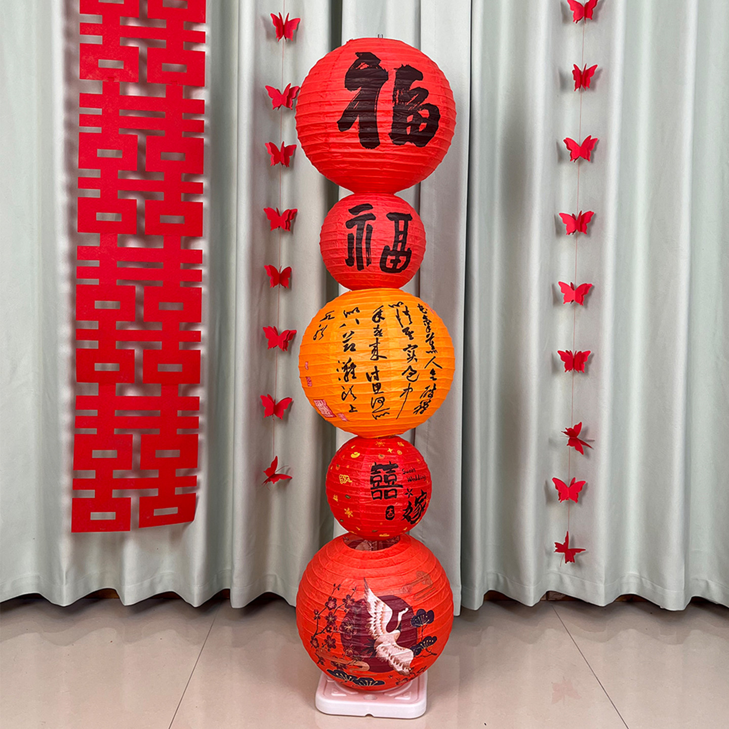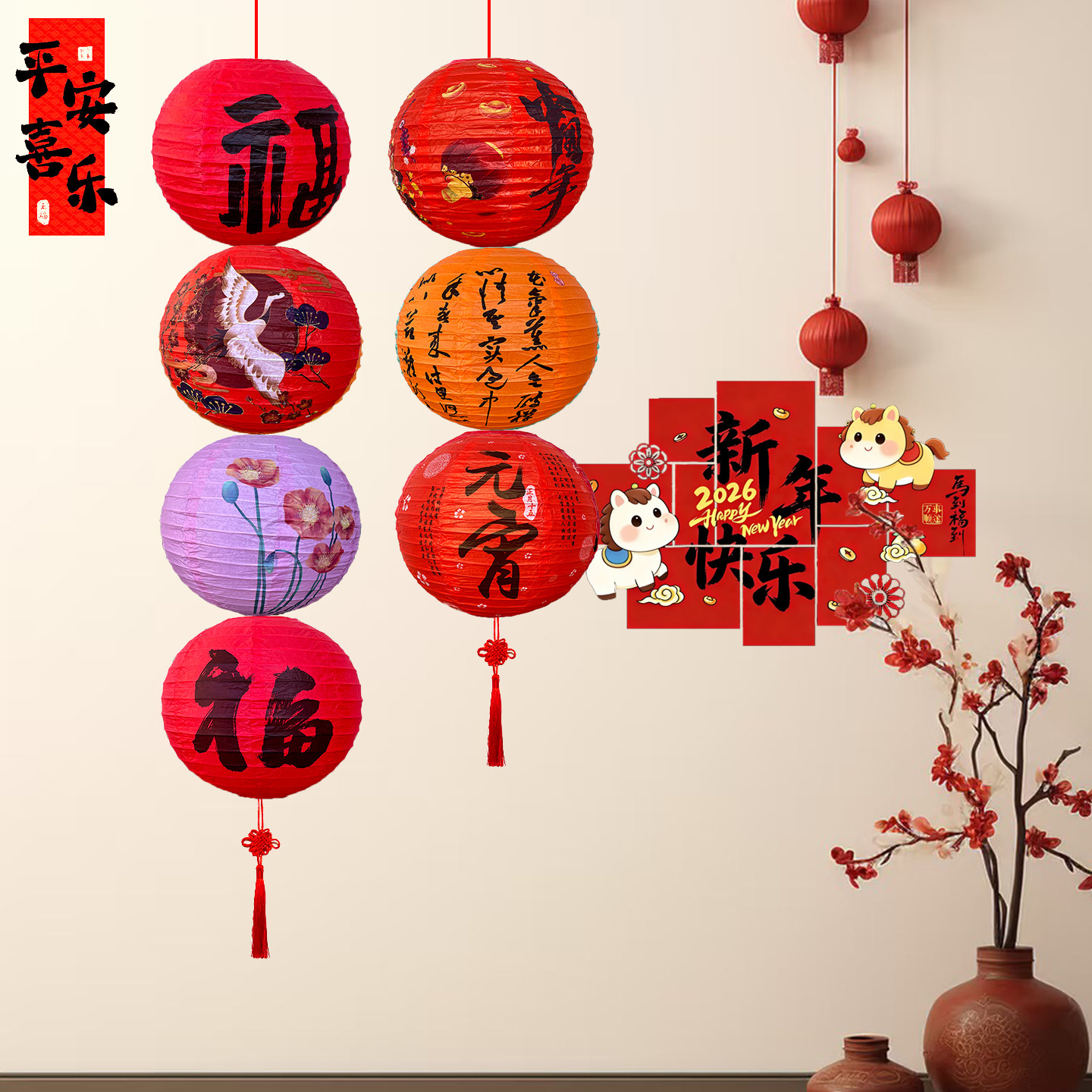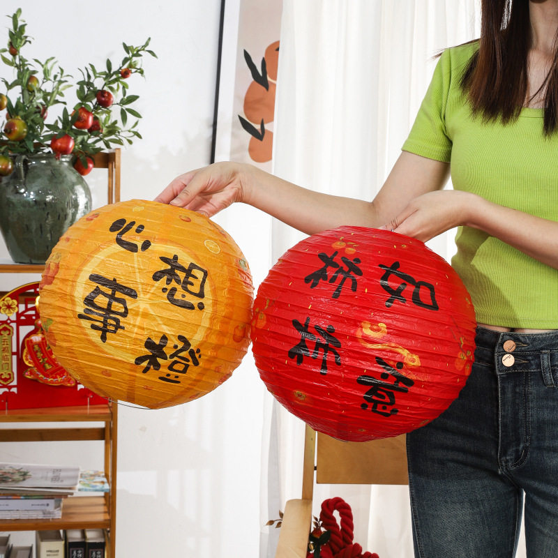 喜庆节日手提发光纸灯笼圆形福字古风传统中国风氛围走廊装饰花灯