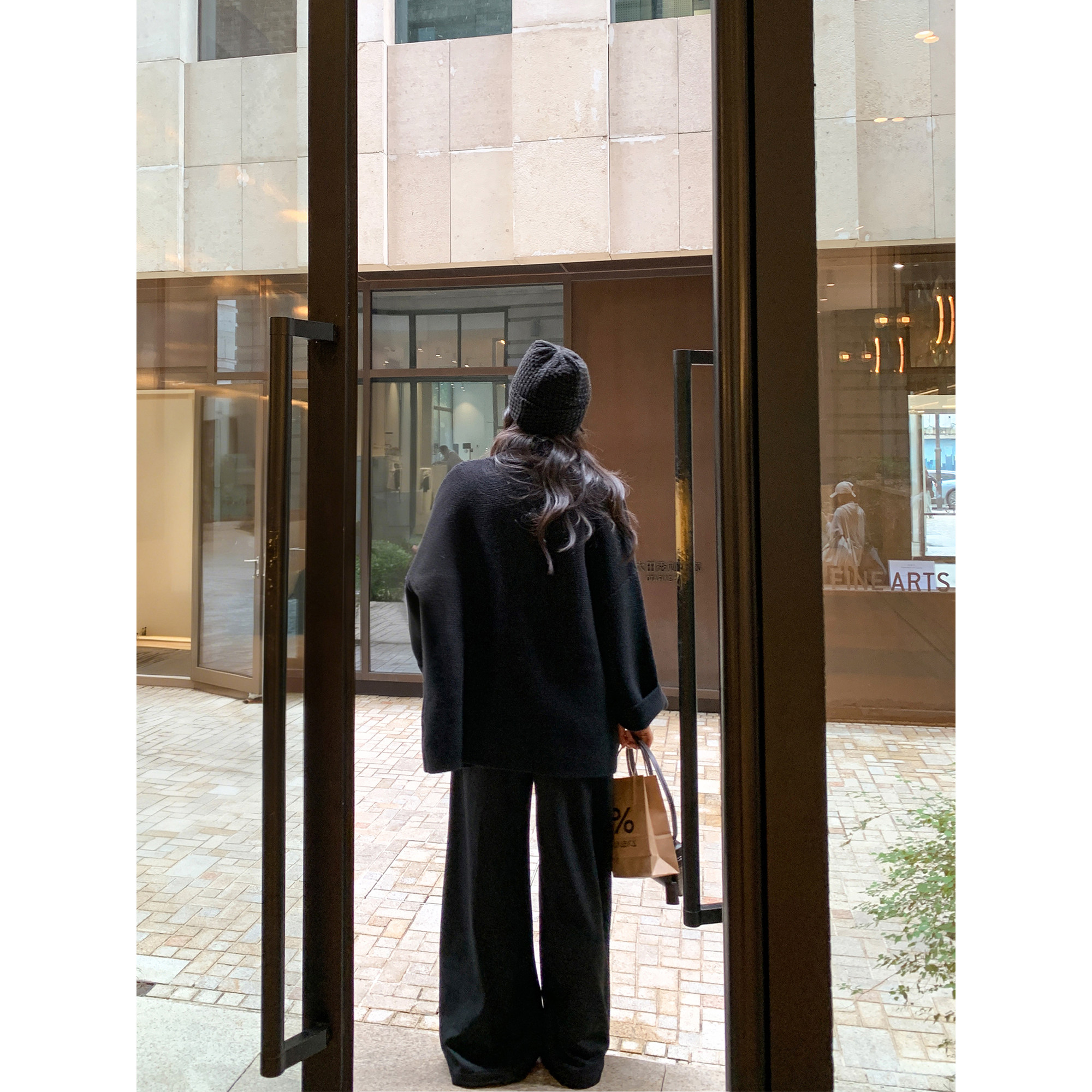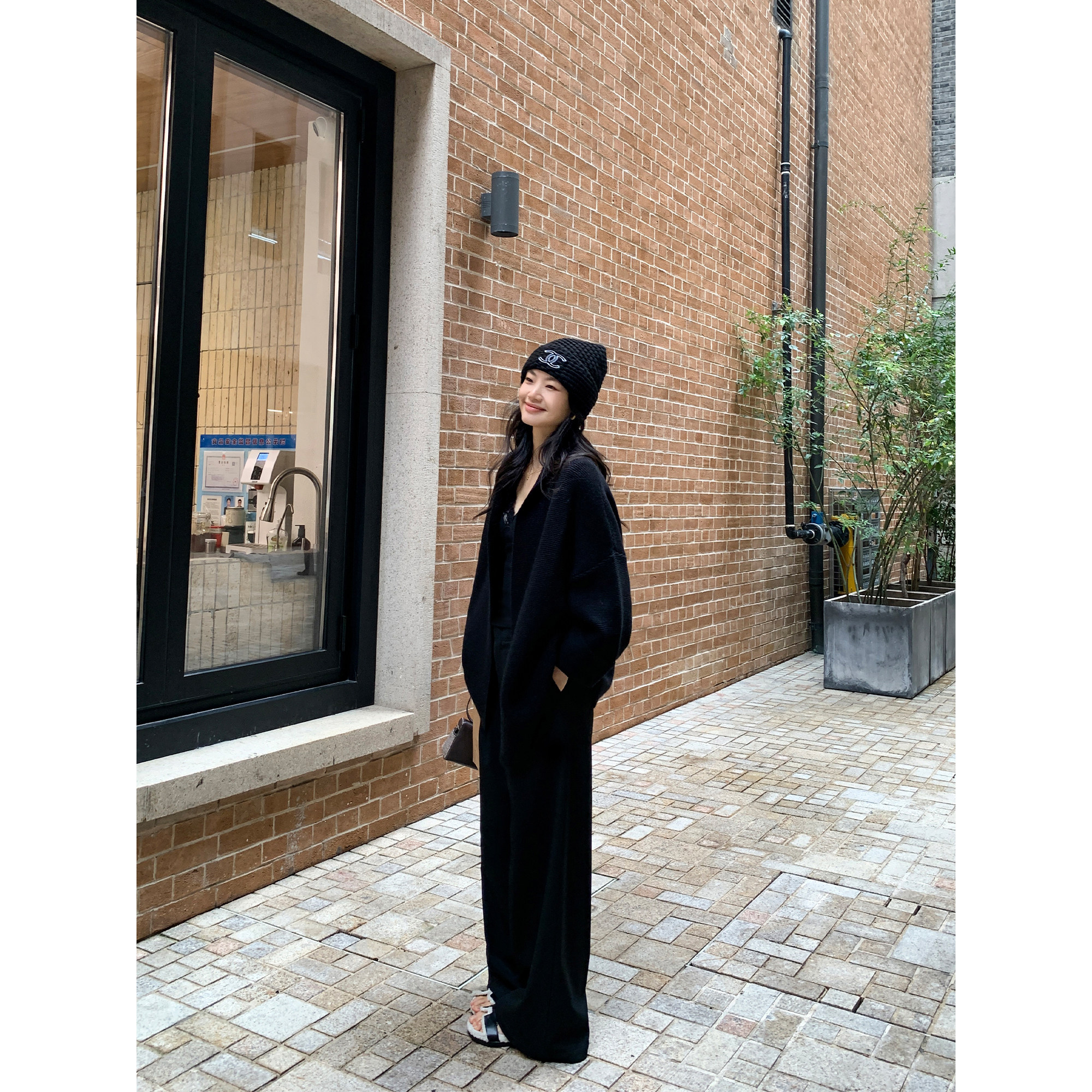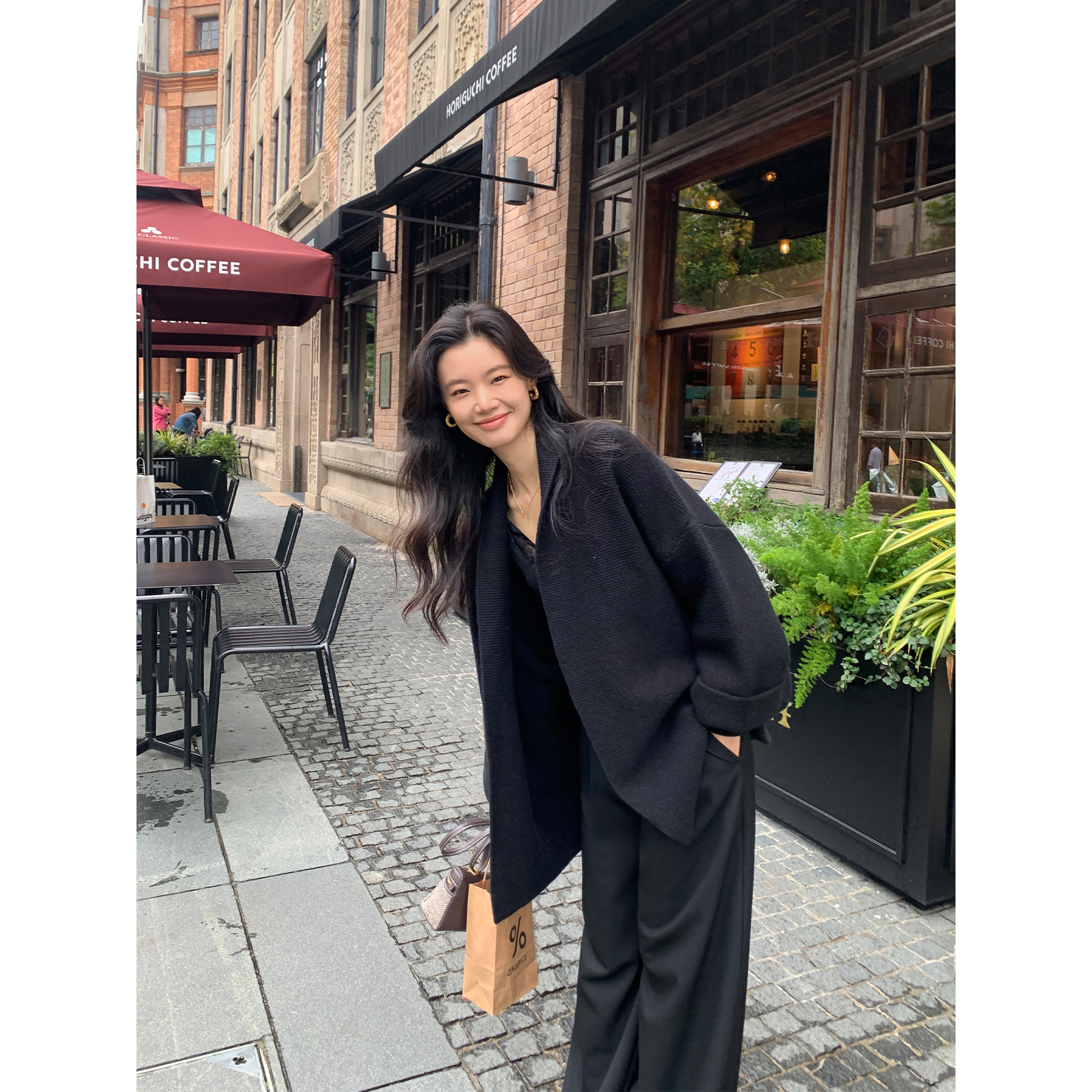 pusumede 时光针脚 慵懒风大翻领毛衣外套女宽松中长款针织开衫