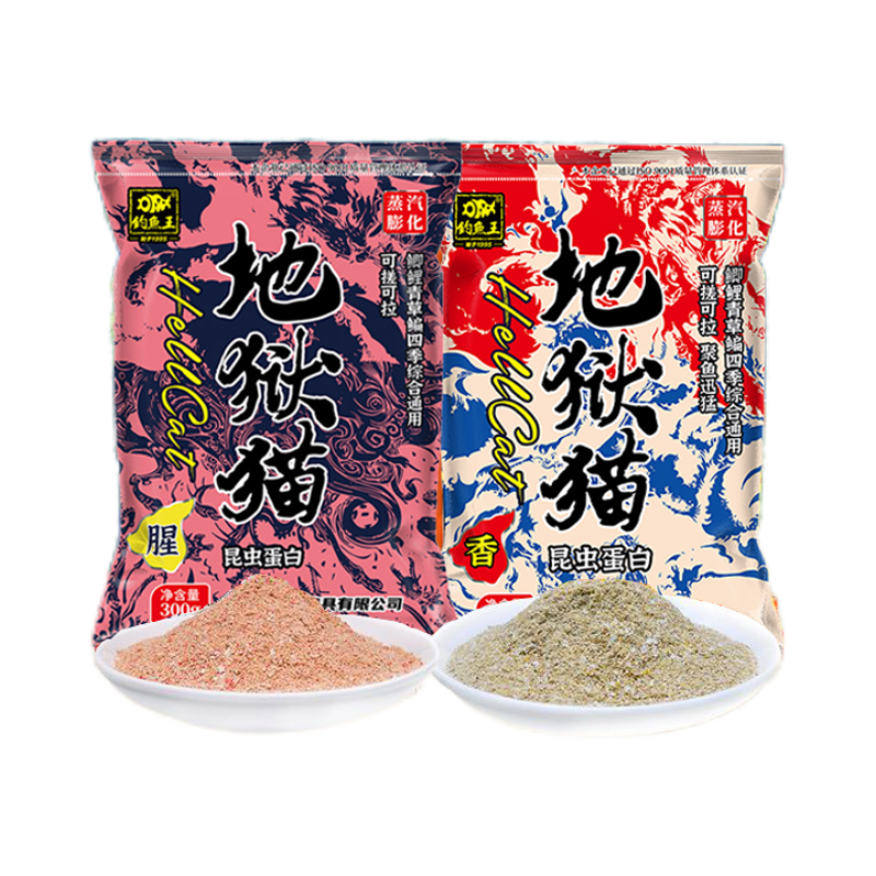 钓鱼王地狱猫饵料秋冬浓腥香味秋冬季野钓鲫鱼黑坑用昆虫蛋白鱼饵