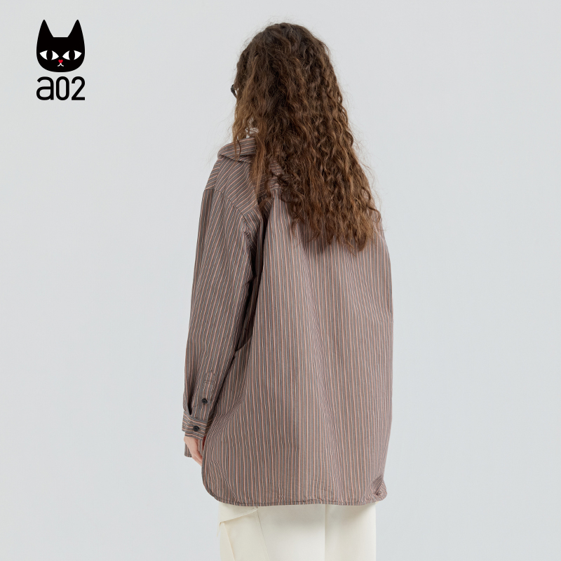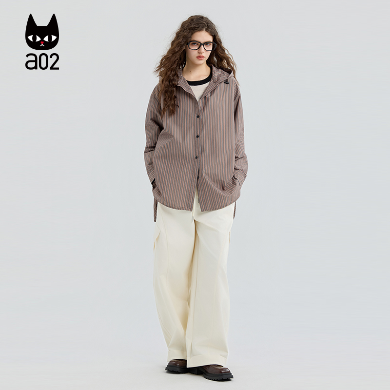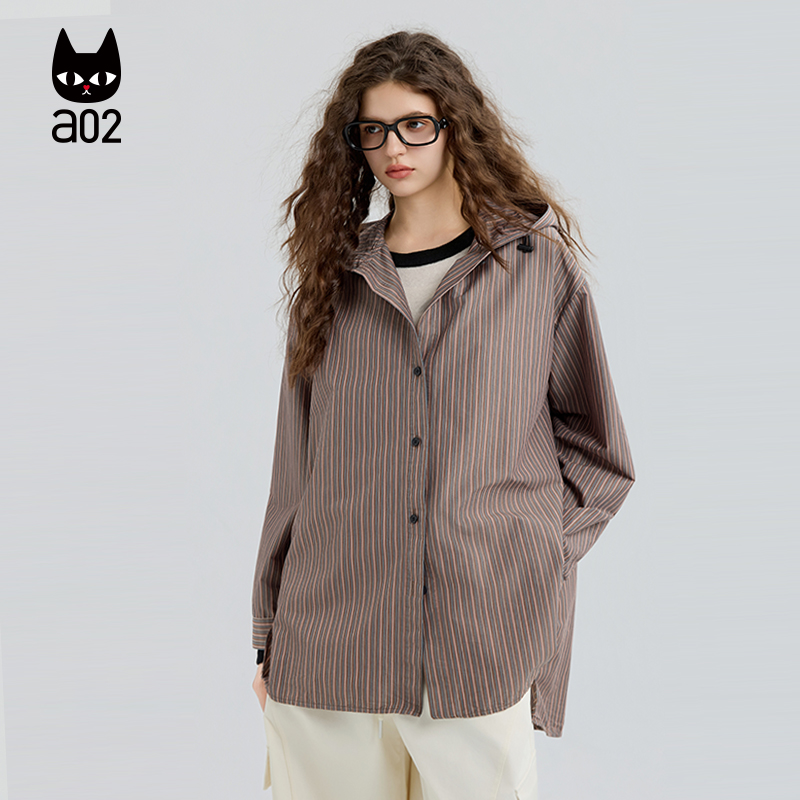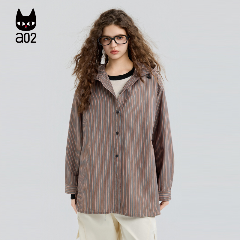 a02宽松连帽条纹长袖衬衫女2025新款秋季设计感衬衣外套通勤穿搭