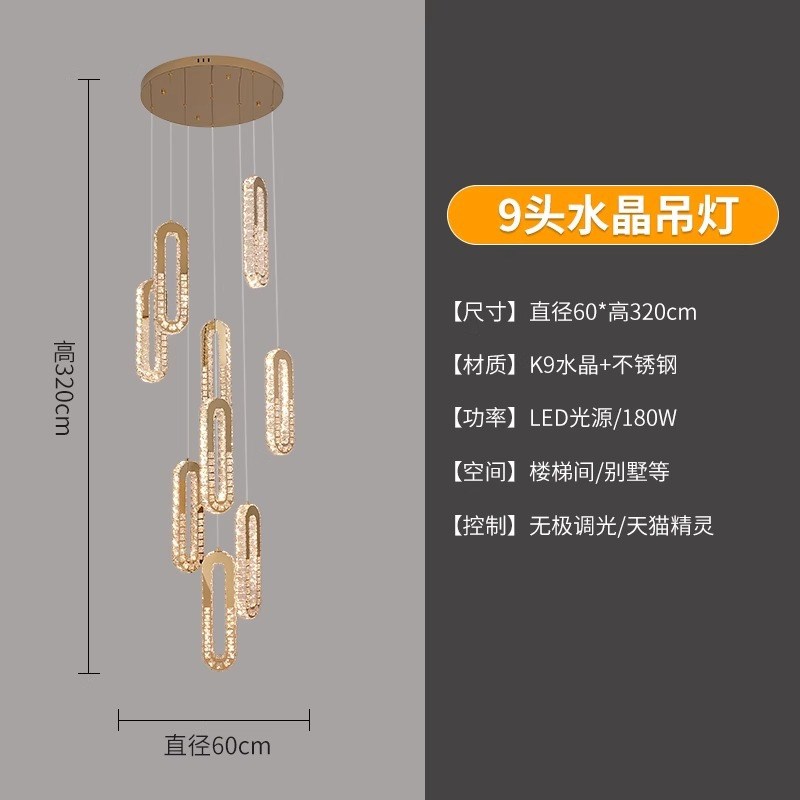 楼梯间长吊灯现代简约客厅水晶灯挑空复式楼别墅商用吊线灯高级感