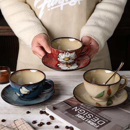 舍里复古窑变陶瓷拿铁拉花咖啡杯碟套装创意情侣杯马克杯子早餐杯
