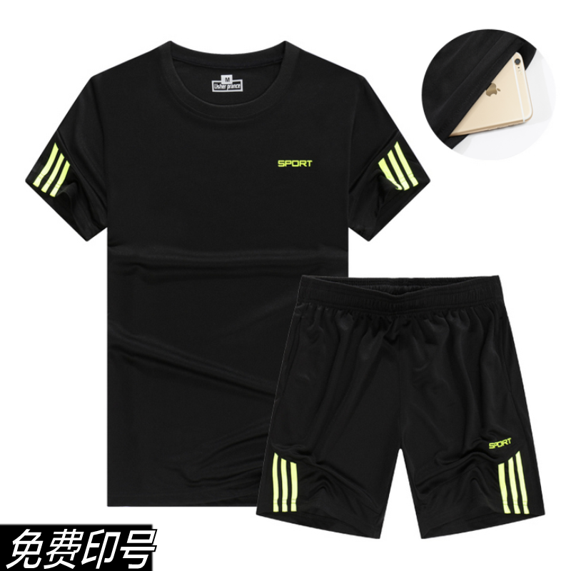 运动套装男夏季短袖T恤跑步足球训练冰丝速干上衣晨跑健身房衣服