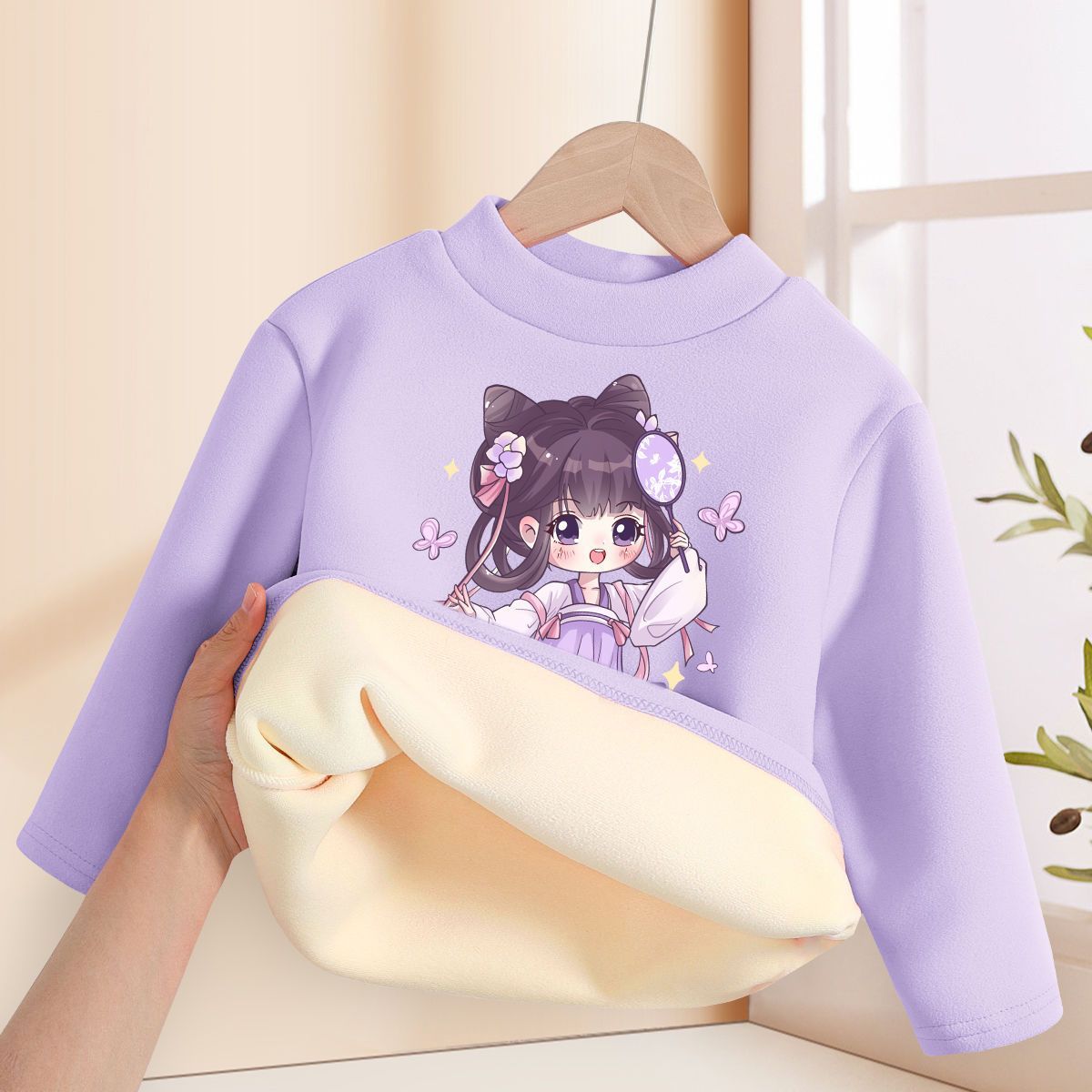 童装女童加绒打底衫女孩秋冬半高领德绒上衣儿童保暖百搭冬装长袖