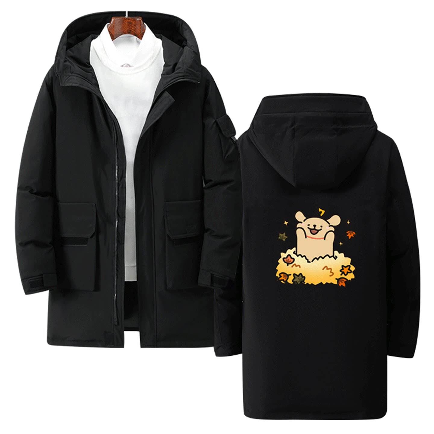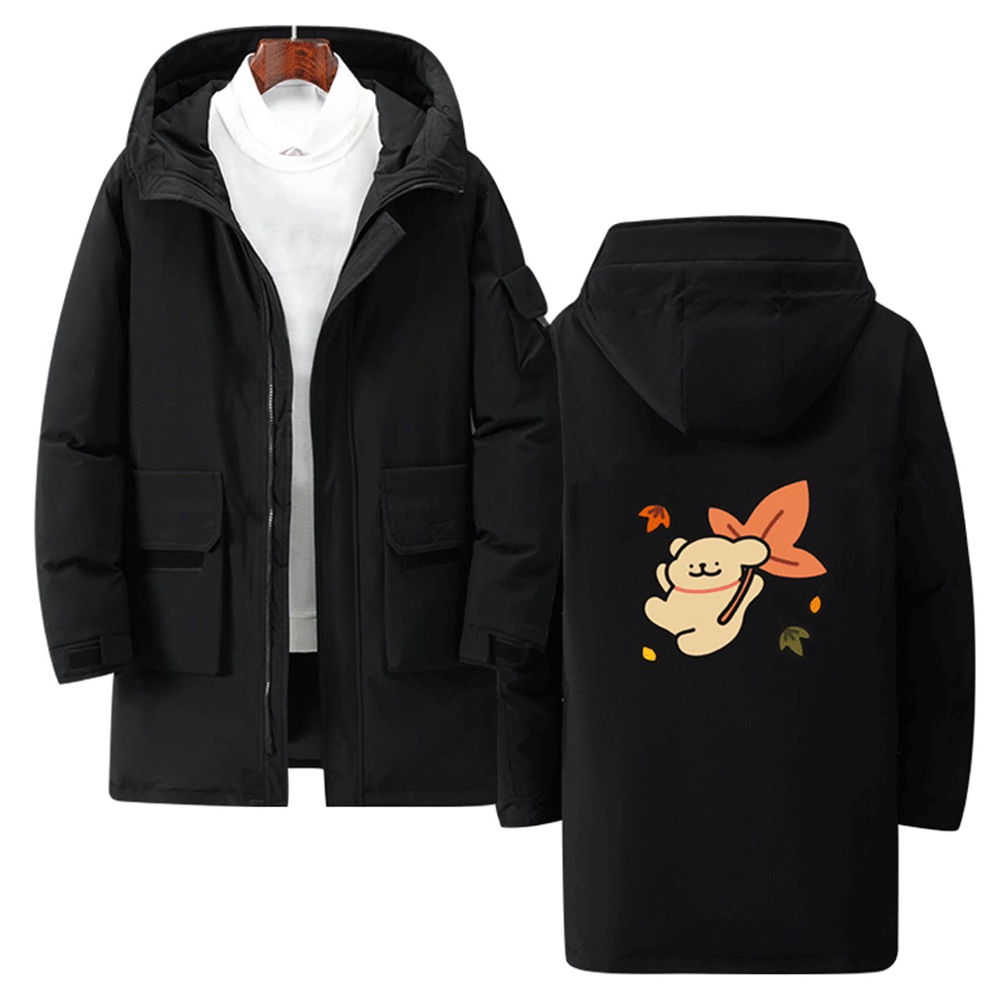 趣味卡通印花创意定制秋冬中长款羽绒服外套线条小狗男女情侣同款