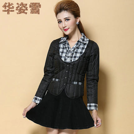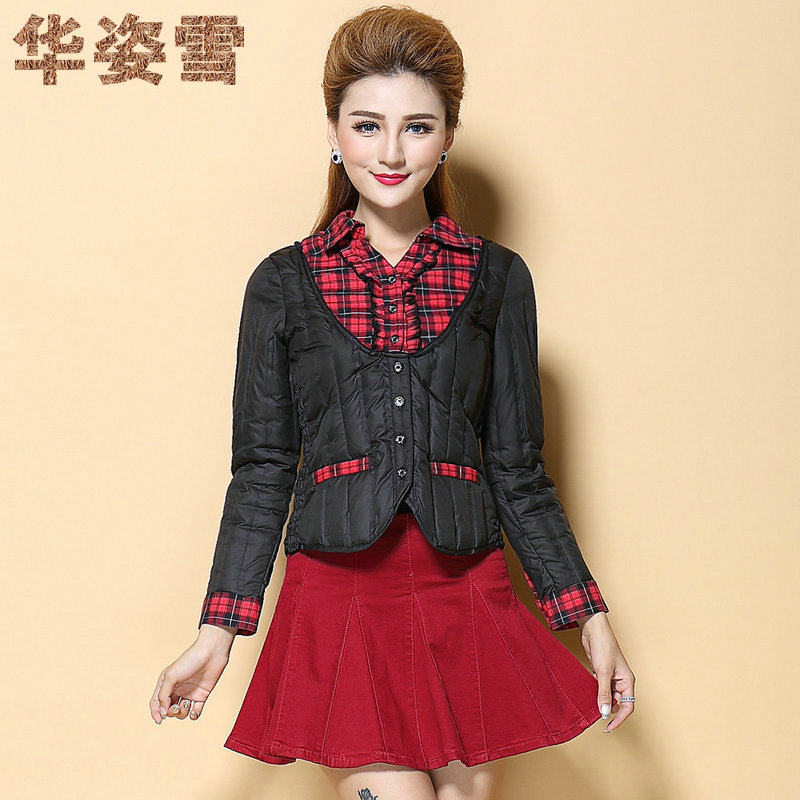 华姿雪格子可拆卸内胆轻薄羽绒服