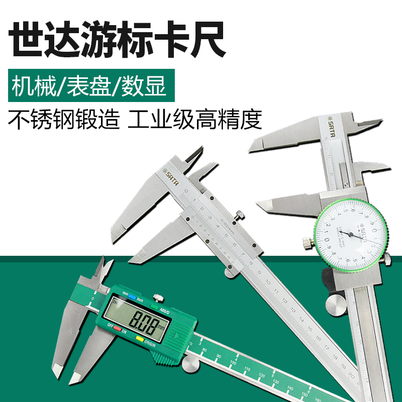 世达游标卡尺不锈钢带表盘机械式珠宝文玩专用高精度数显电子卡尺
