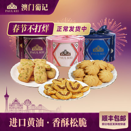 【澳门葡记葡式开心果蝴蝶酥330g礼盒】坚果切片黄油小花曲奇饼干