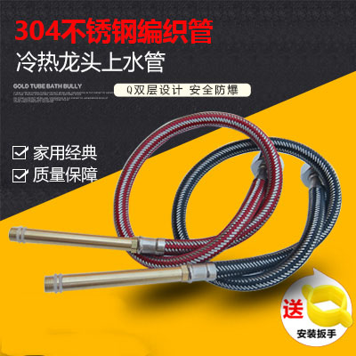 水龙头进水管冷热防爆厨房菜盆面盆水龙头304不锈钢编织软管尖头