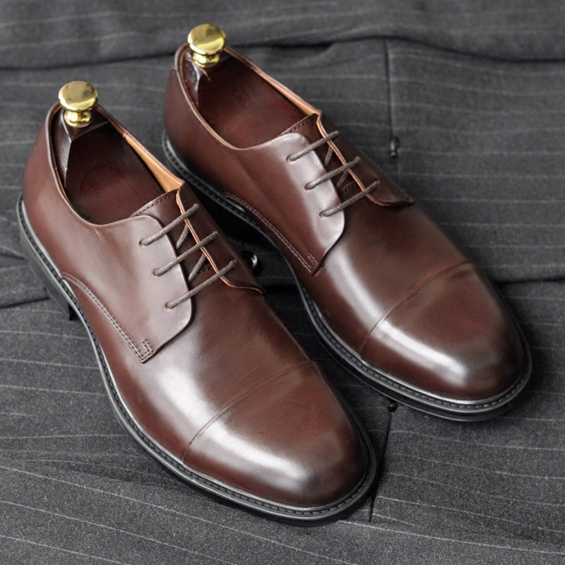 手工真皮男士商务休闲皮鞋圆头厚底增高工装男鞋潮流英伦牛皮鞋