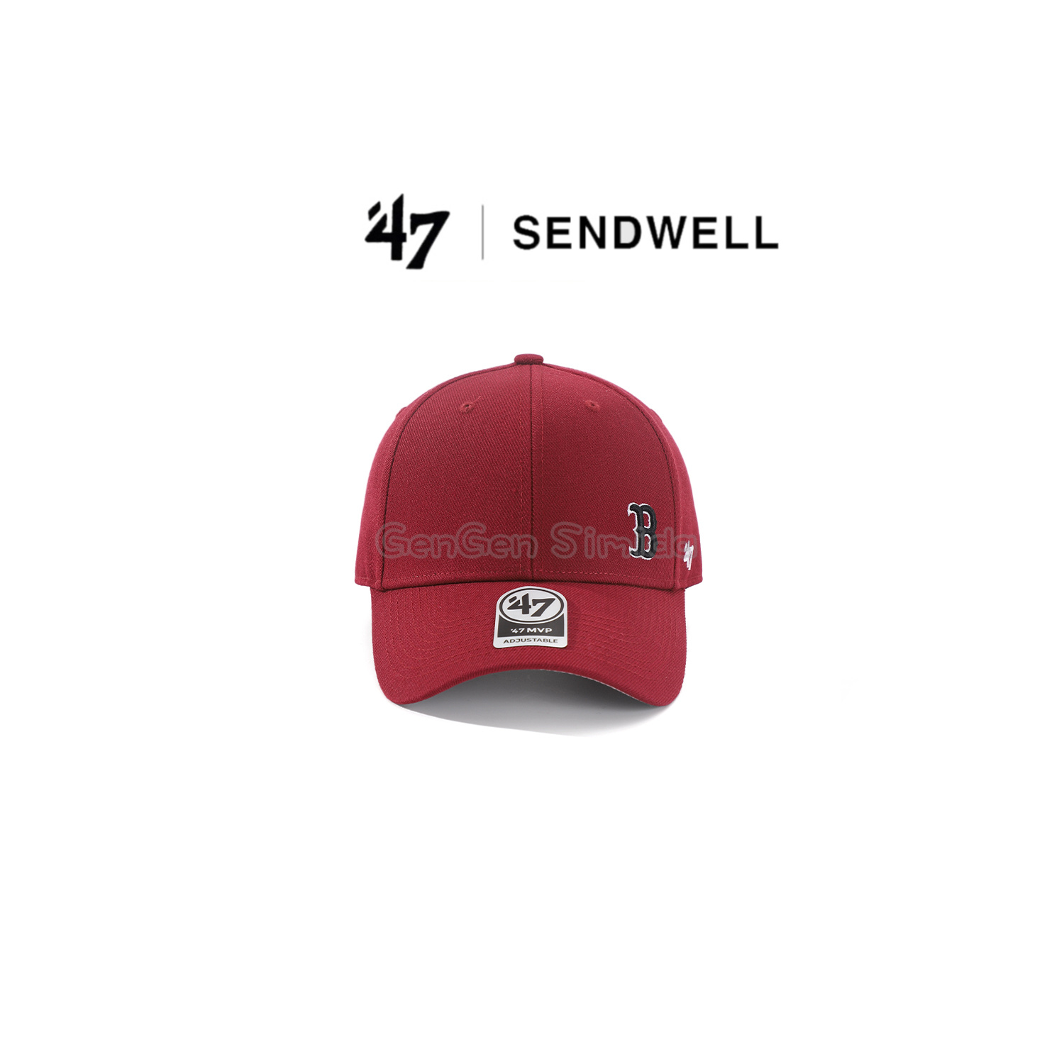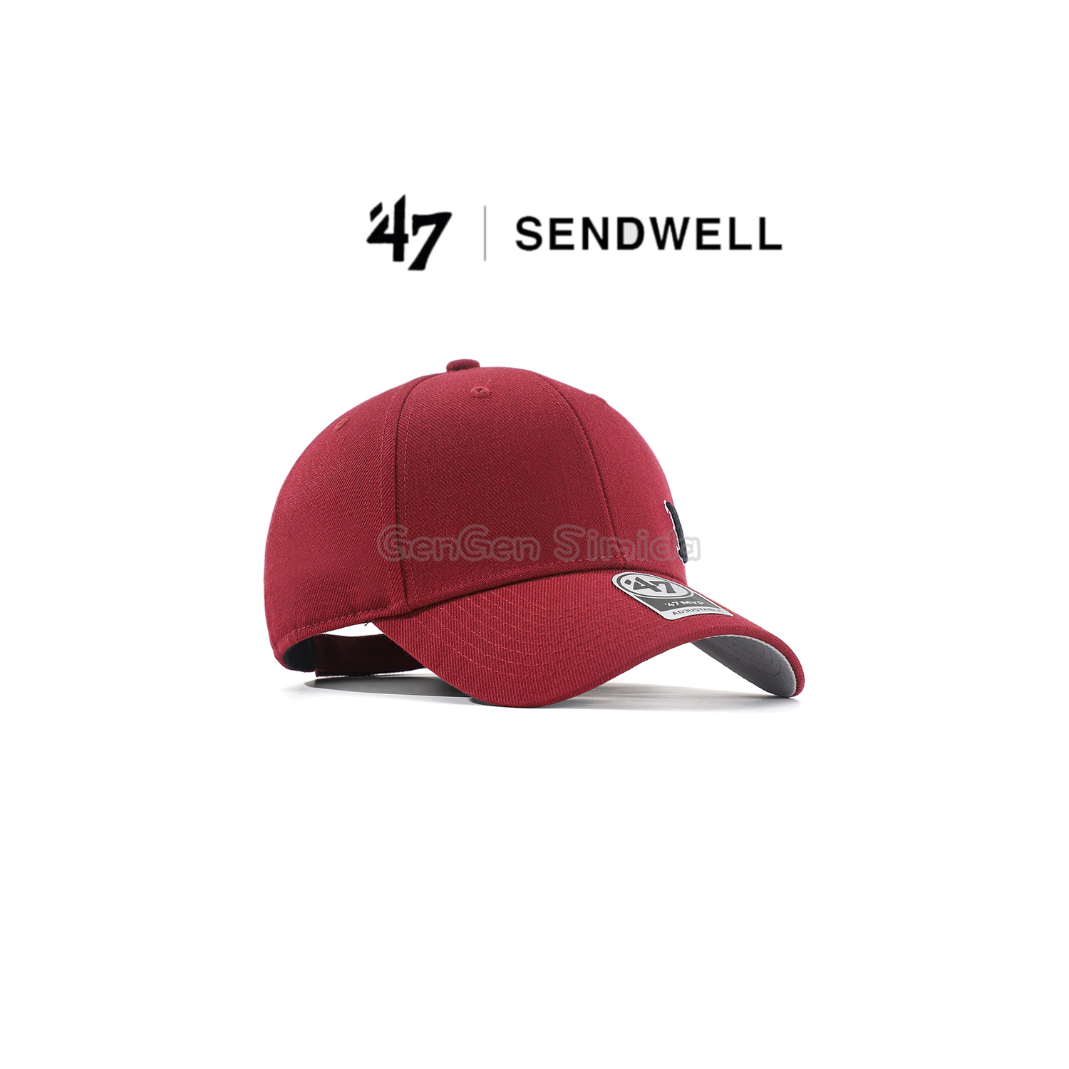 47brand硬顶酒红侧标棒球帽防晒复古男女户外旅游显脸小鸭舌帽潮