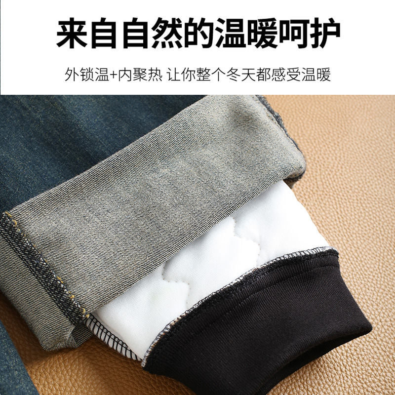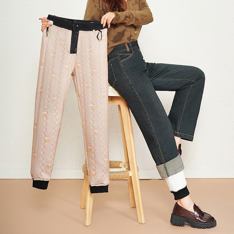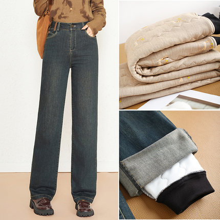 加棉加厚蚕丝棉裤女高腰显瘦冬季外穿一体牛仔棉裤宽松窄版直筒裤