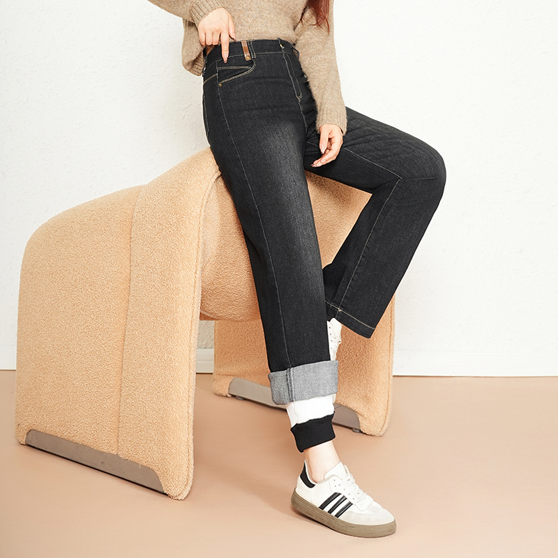 高腰显瘦窄版直筒牛仔蚕丝棉裤