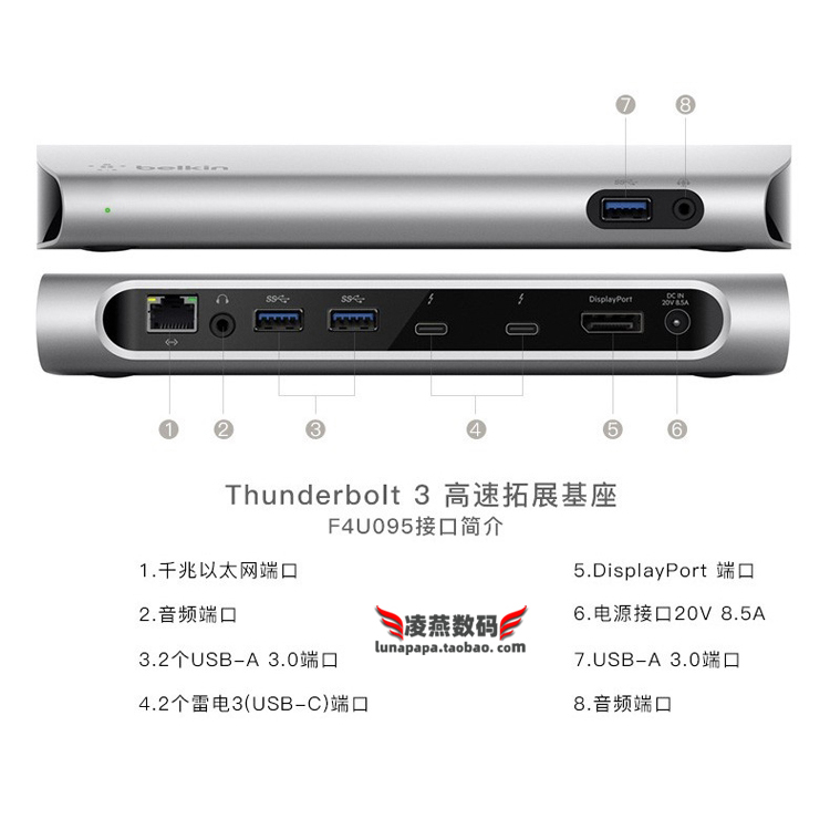 Belkin贝尔金雷电3扩展坞 苹果MacBook M1 M2 M3戴尔ThinkPad惠普