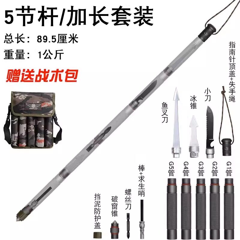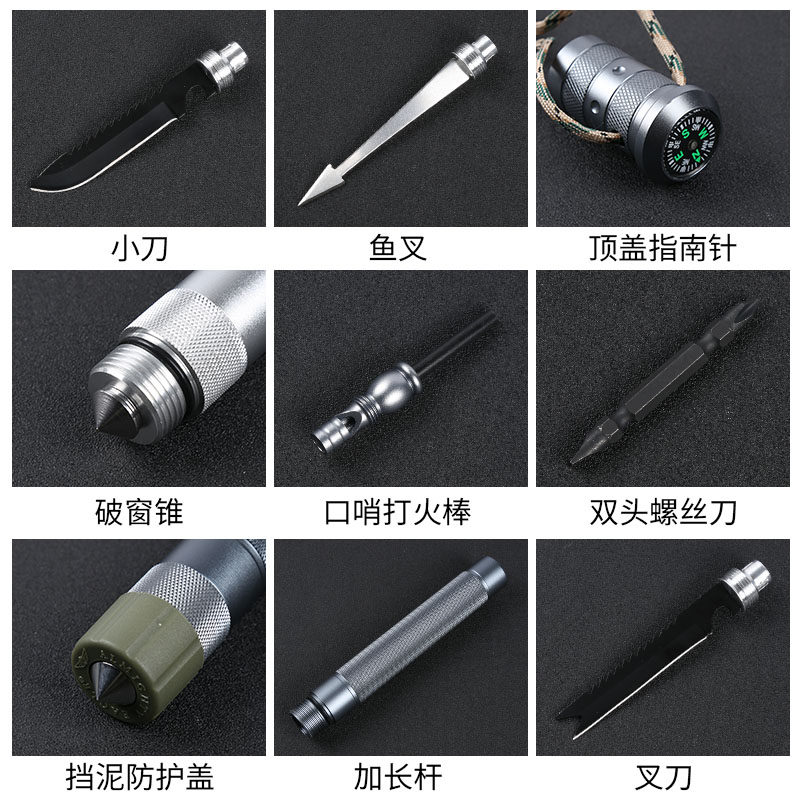 多功能登山杖防身棍车载防身自卫武器伸缩棍战术棍中刀户外拐杖