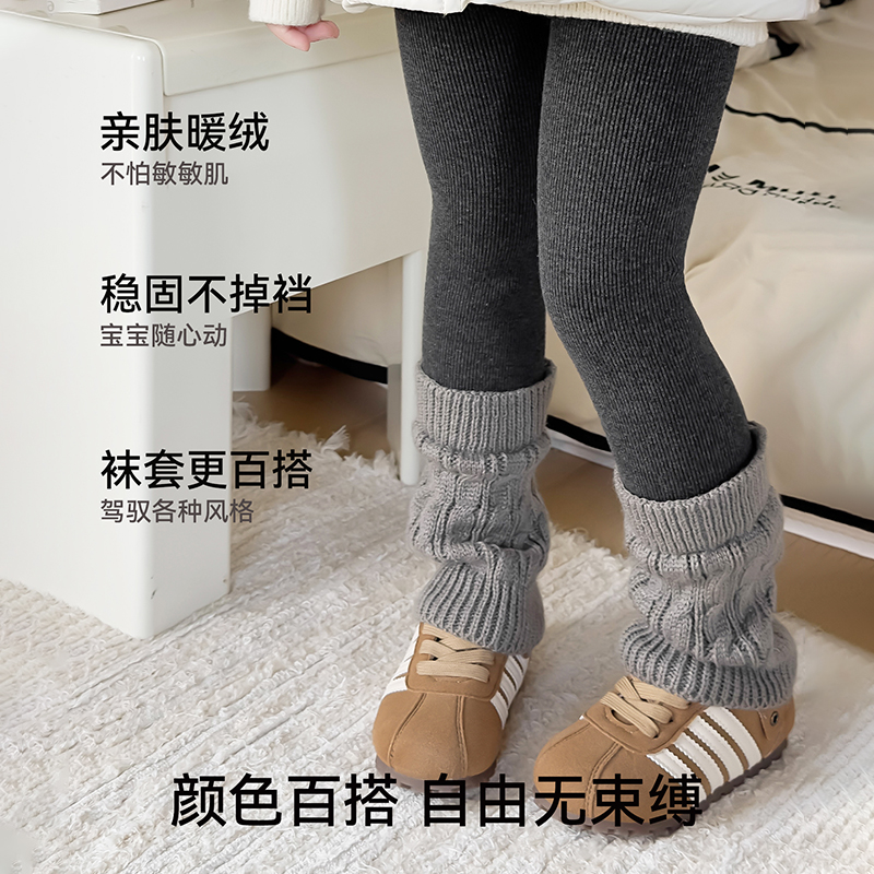 堆堆袜打底裤女童冬季加绒加厚宝宝女孩外穿灰色儿童裤子白色黑色